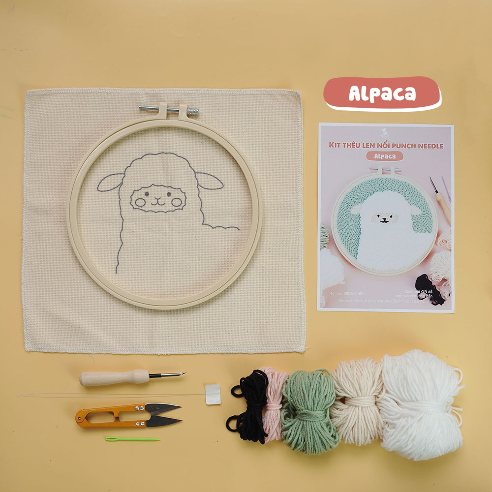 Hướng dẫn thêu tranh punch needle mẫu alpaca: