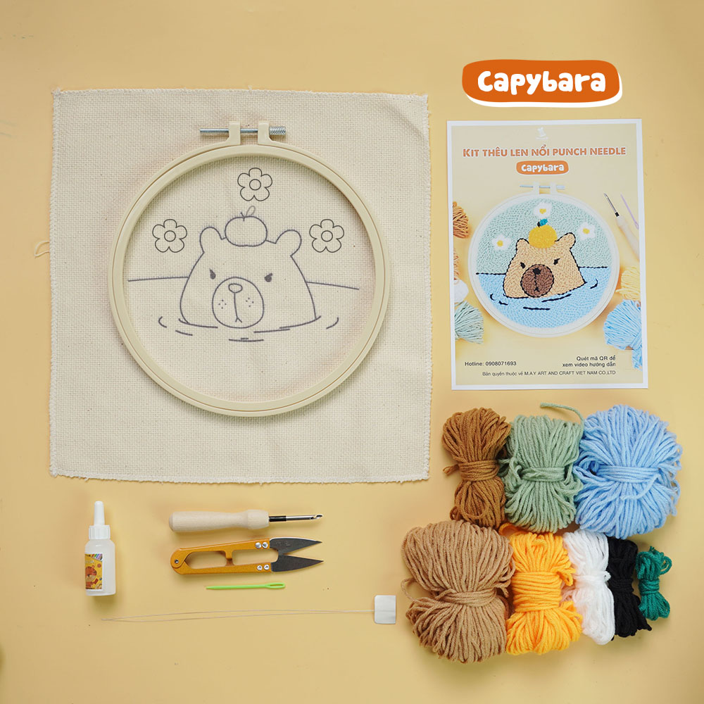 Hướng dẫn thêu tranh punch needle mẫu capybara: