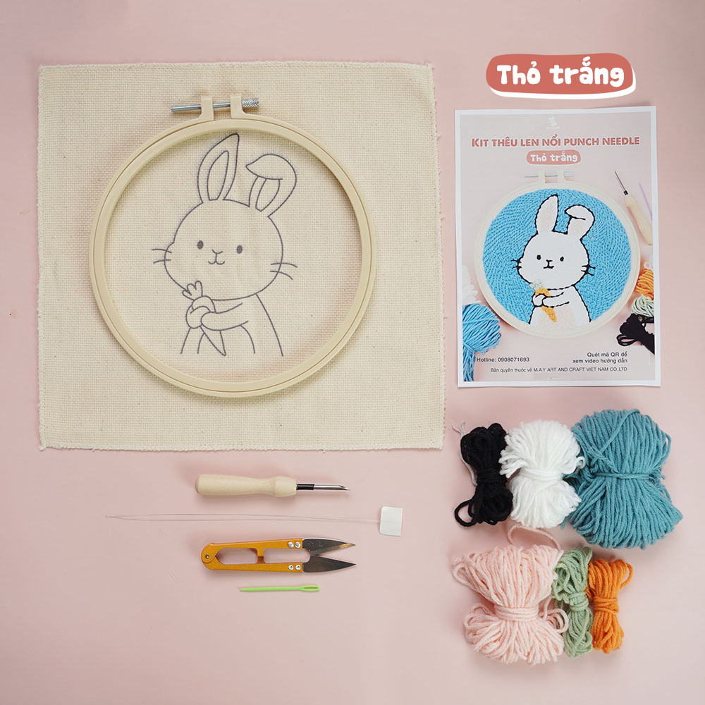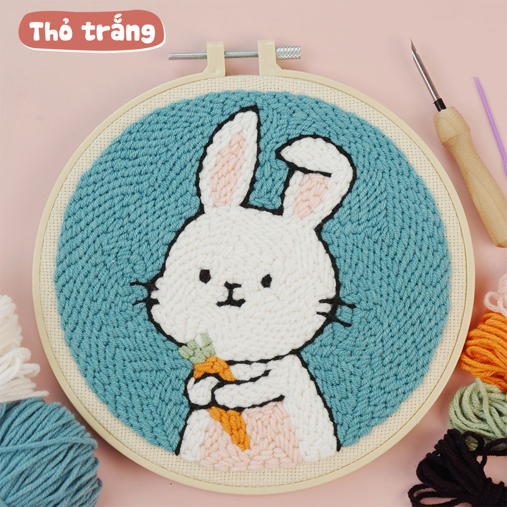 Hướng dẫn thêu tranh punch needle mẫu thỏ trắng: