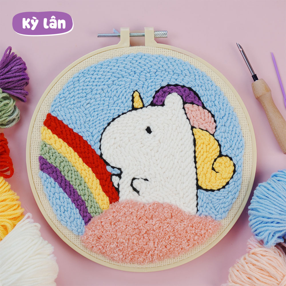 Hướng dẫn thêu tranh punch needle mẫu kỳ lân: