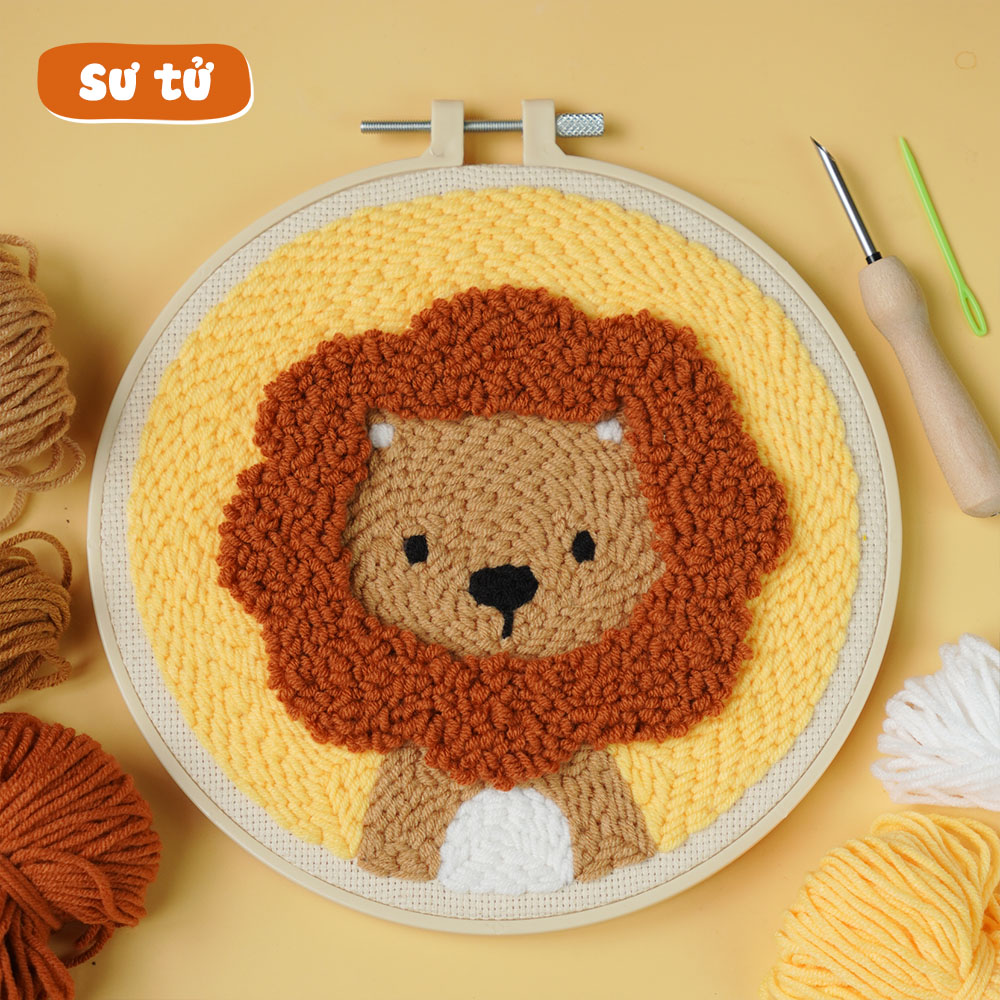 Hướng dẫn thêu tranh punch needle mẫu sư tử: