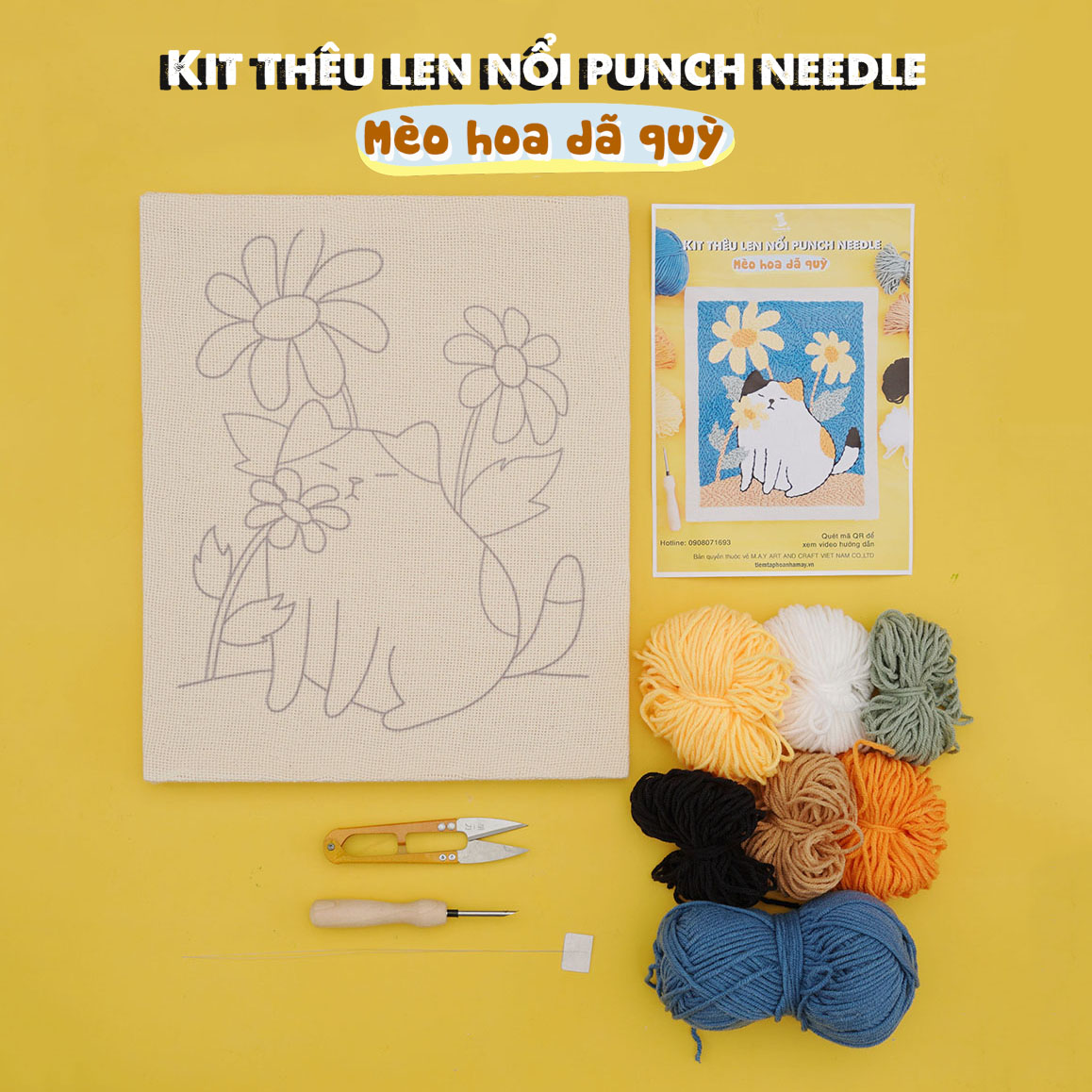 Bộ nguyên liệu thêu tranh len nổi Punch needle bao gồm đầy đủ nguyên liệu dụng cụ đi kèm video và hình ảnh chi tiết giúp người dùng dễ hàng hoàn thiện 1 bức tranh khung gỗ với kỹ thuật thêu len nổi. Thành phẩm để trang trí hoặc làm quà tặng ý nghĩa cho người thân bạn bè.