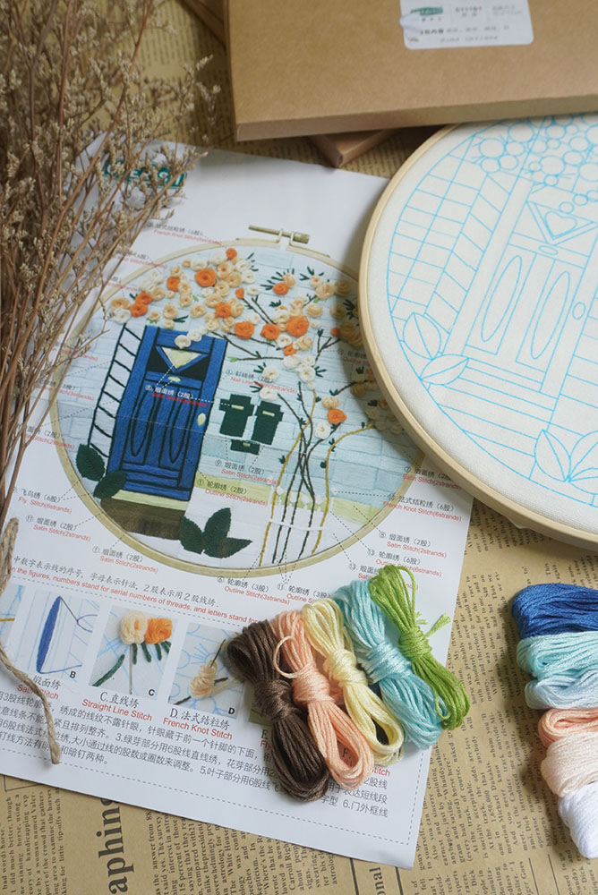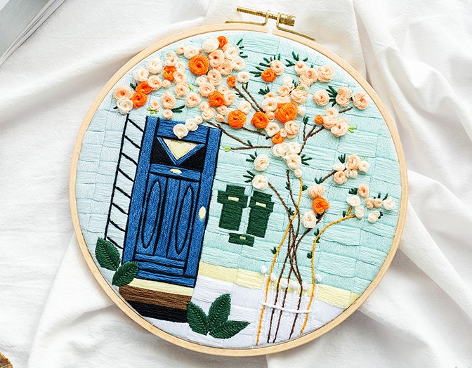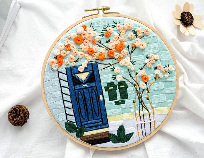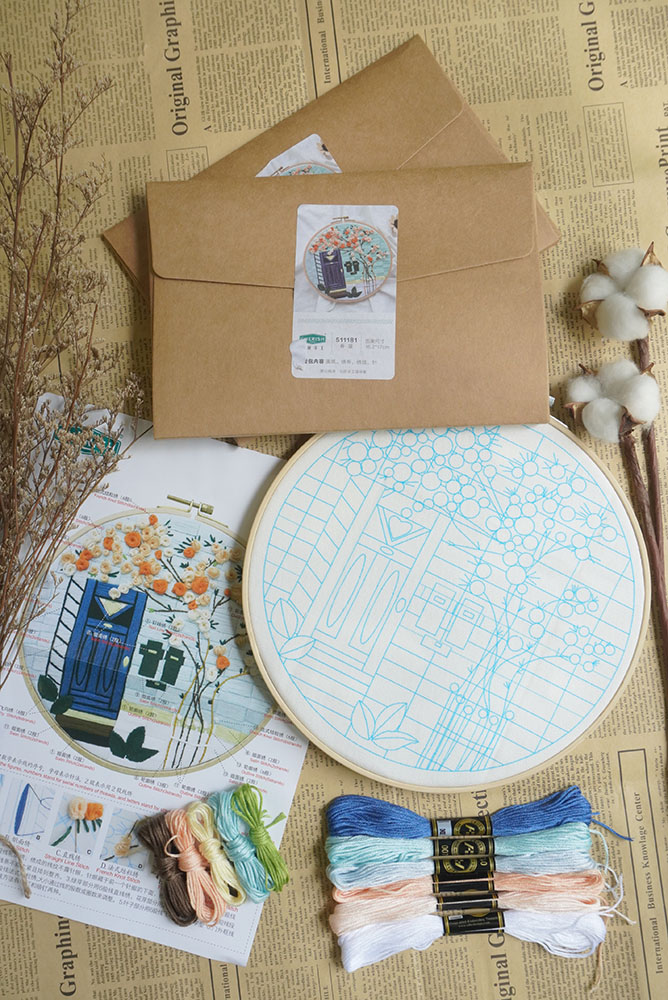 Kit tập thêu thềm nhà có hoa dành cho những cô nàng thích thêu thùa và hoa cỏ.