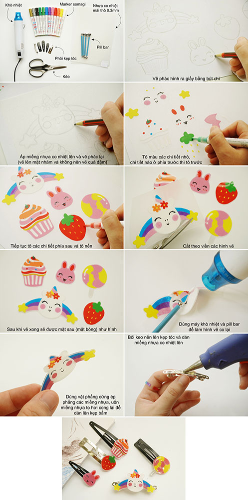 Làm kẹp tóc tông hồng đỏ từ nhựa co nhiệt