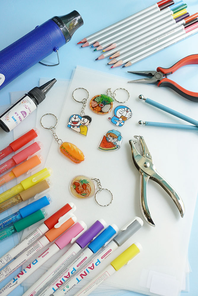 Nguyên liệu gồm nhựa co nhiệt trong suốt không mài 0.2mm và các dụng cụ hỗ trợ đều có tại tiemtaphoanhamay.vn nha.