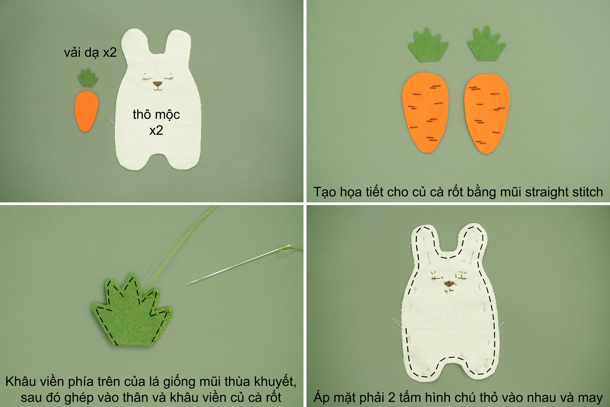 Cuối tuần cho em Thỏ đi chơi chút xíu, và tất nhiên không thể thiếu người anh em chí cốt mang tên Cà rốt rồi! Ngoài vải dạ, chị em có thể thêu luôn củ cà rốt lên miếng vải may thỏ nha. Xem cách làm siêu dễ của Tiệm và thử tận dụng vải thừa trong nhà xem sao!