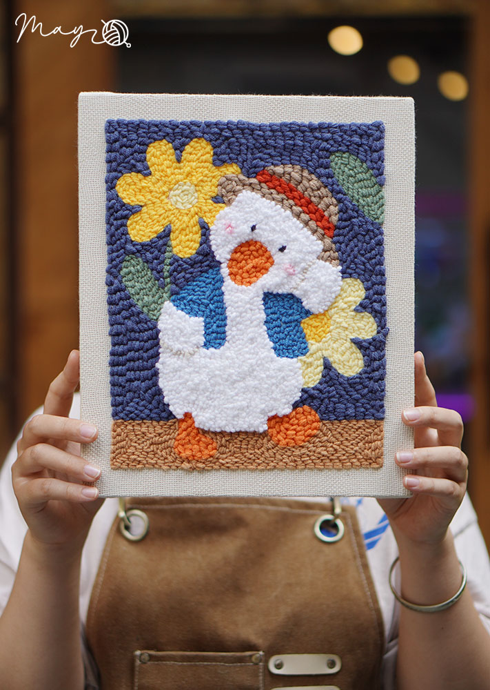 Làm tranh chú vịt bằng kỹ thuật punch needle