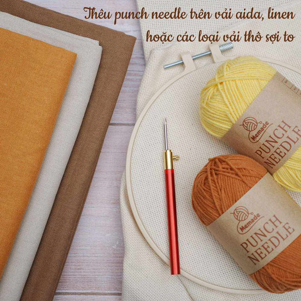 Để sử dụng len cho bộ môn thêu nổi punch needle, bạn cần thêu trên nền vải aida mềm chuyên dụng thêu nổi, vải linen, hoặc các loại vải thô sợi to.