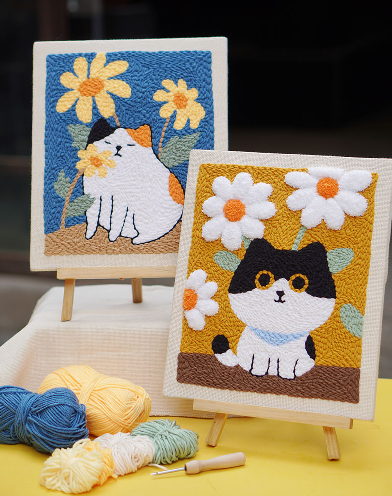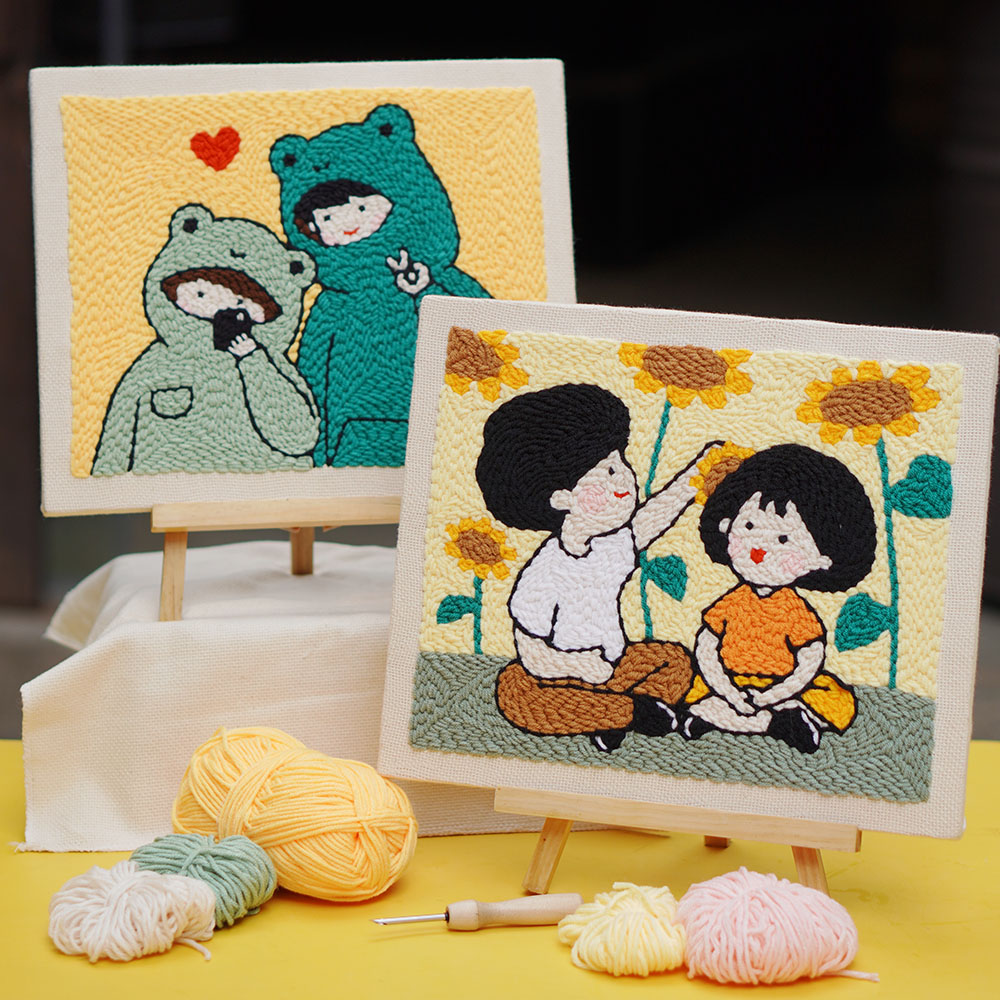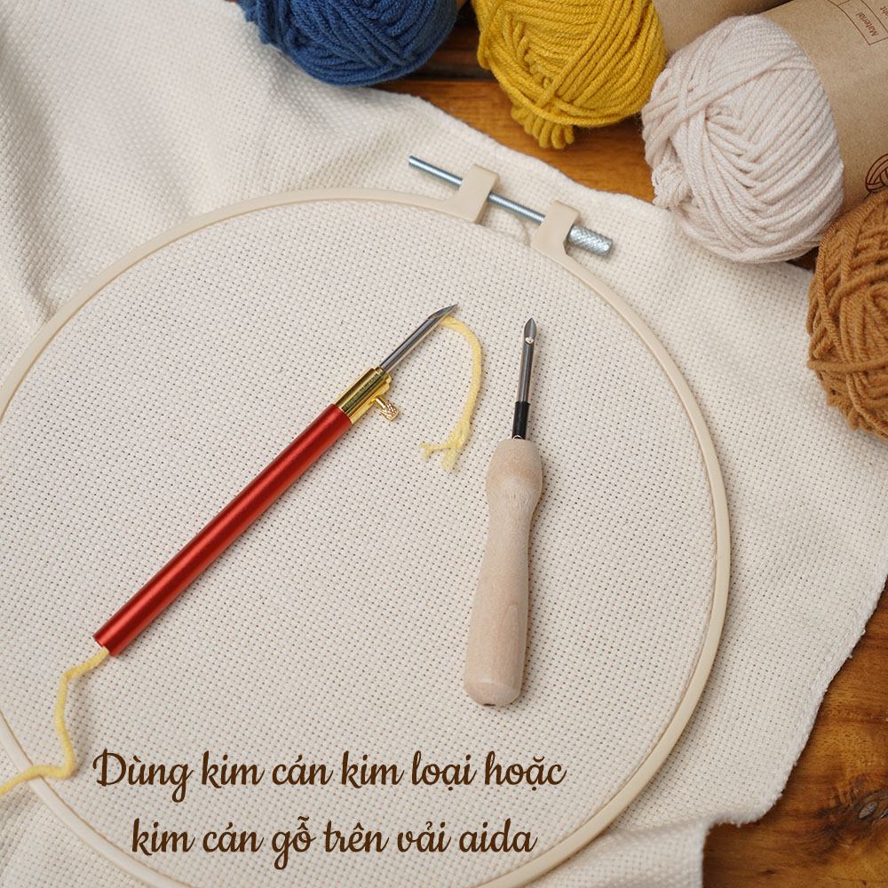 Để sử dụng len cho bộ môn thêu nổi punch needle, bạn cần mua kèm vải aida chuyên dụng để thêu nổi, và kim thêu nổi chuyên dụng