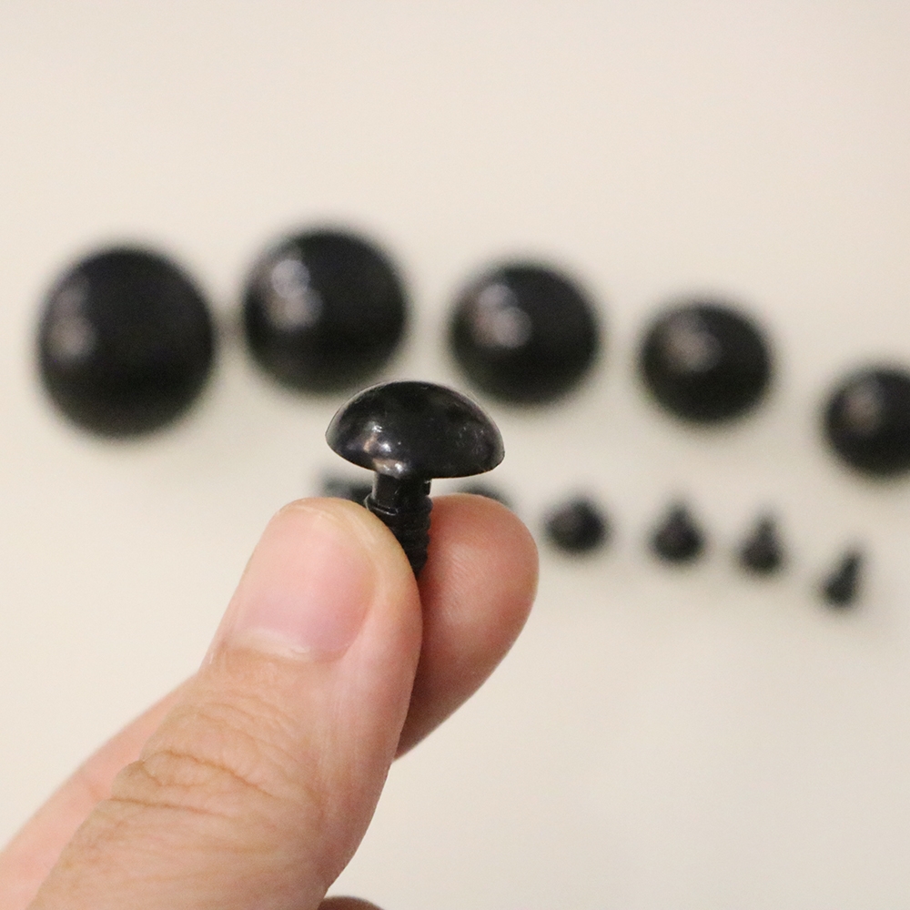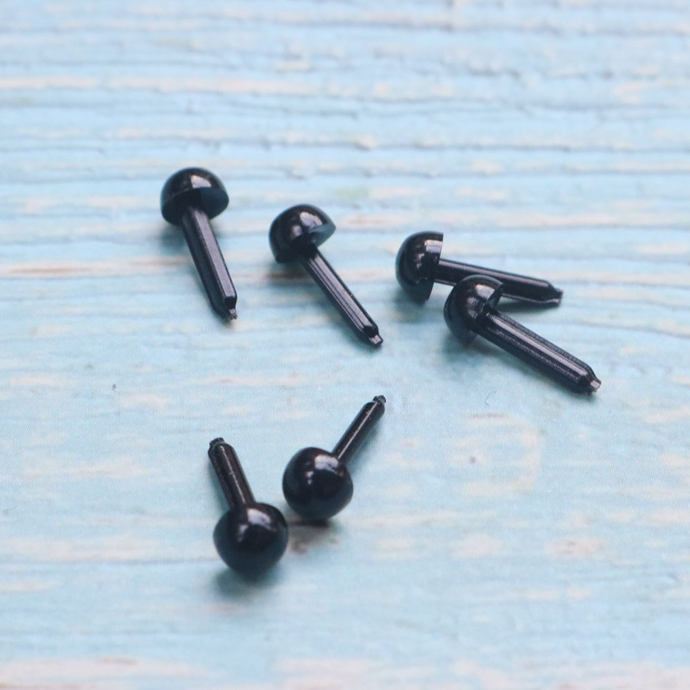 Mắt bằng nhựa cứng màu đen, bề mặt bóng, đẹp. Mắt có chân xoắn giúp bạn gắn mắt cho thú bông một cách dễ dàng (riêng các size nhỏ 3-4-5mm là chân thẳng).