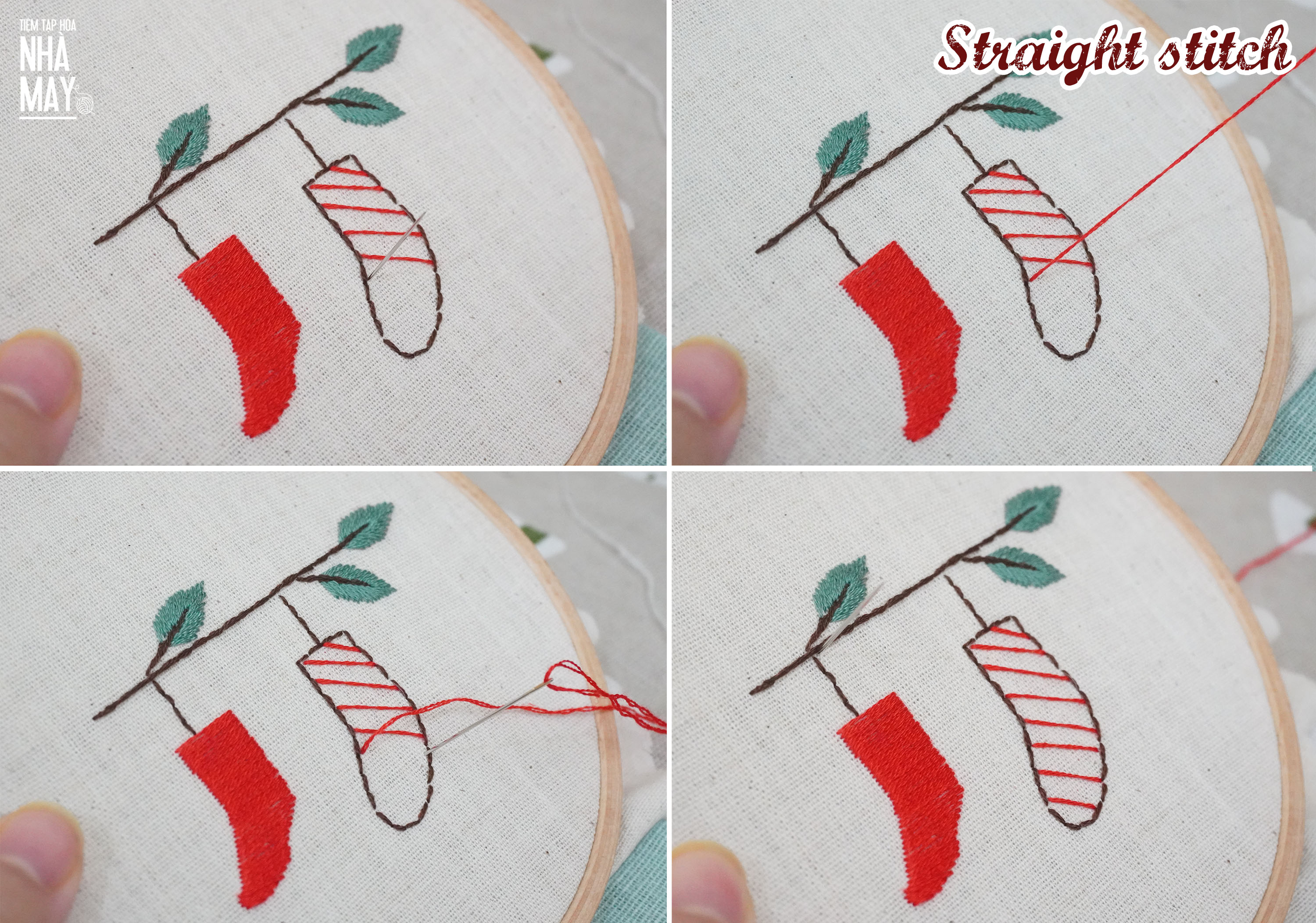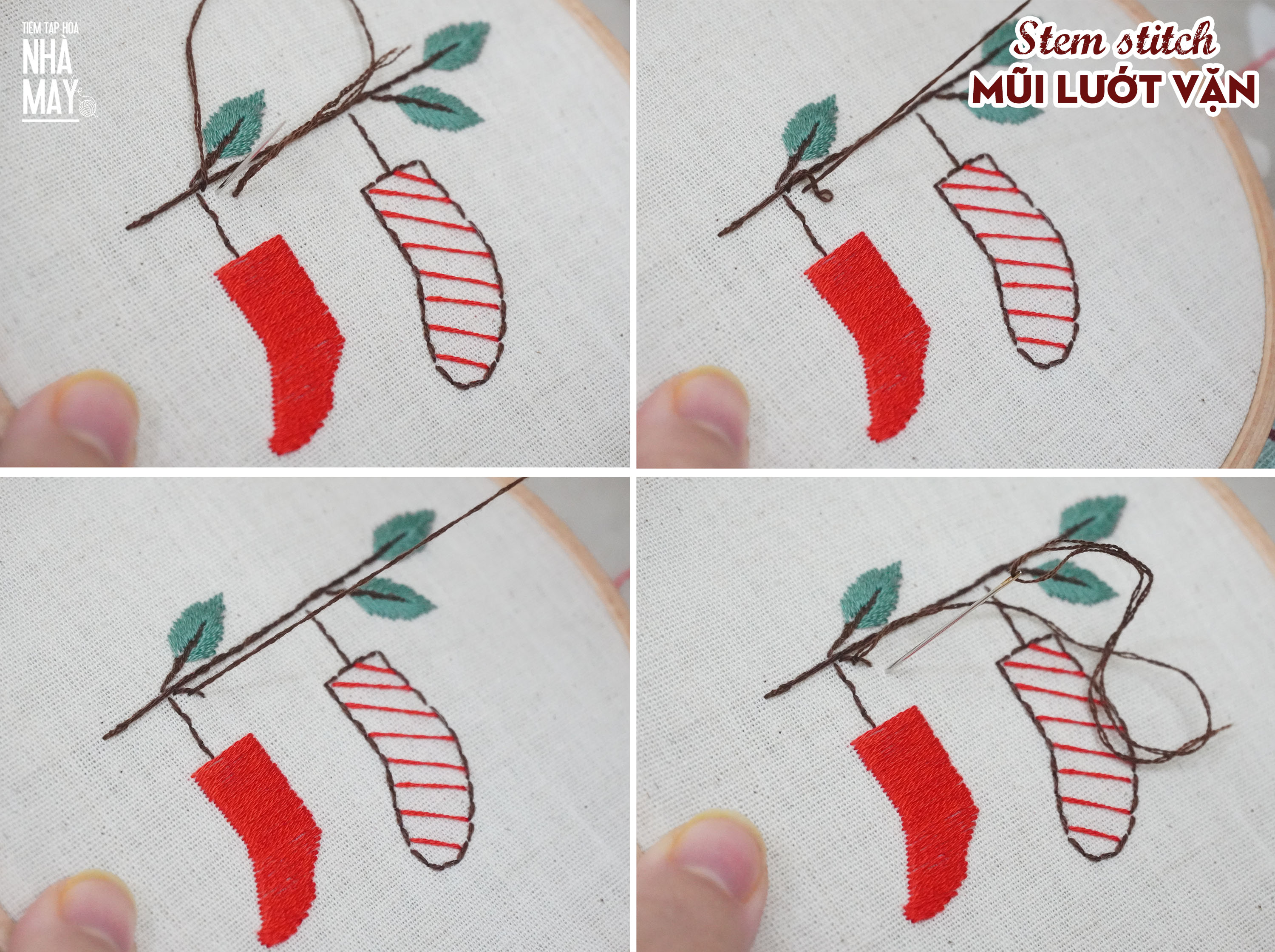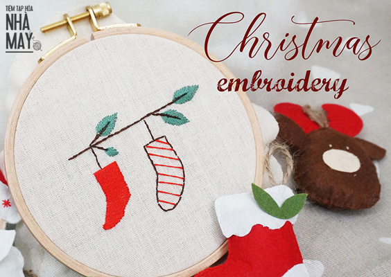 Mẫu thêu đôi tất Giáng Sinh căn bản cho người mới học thêu