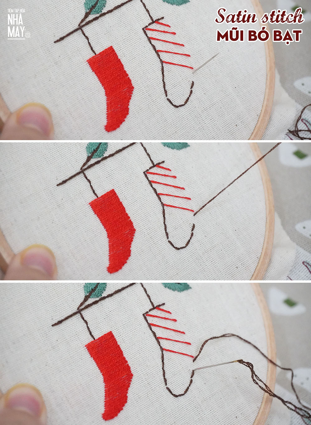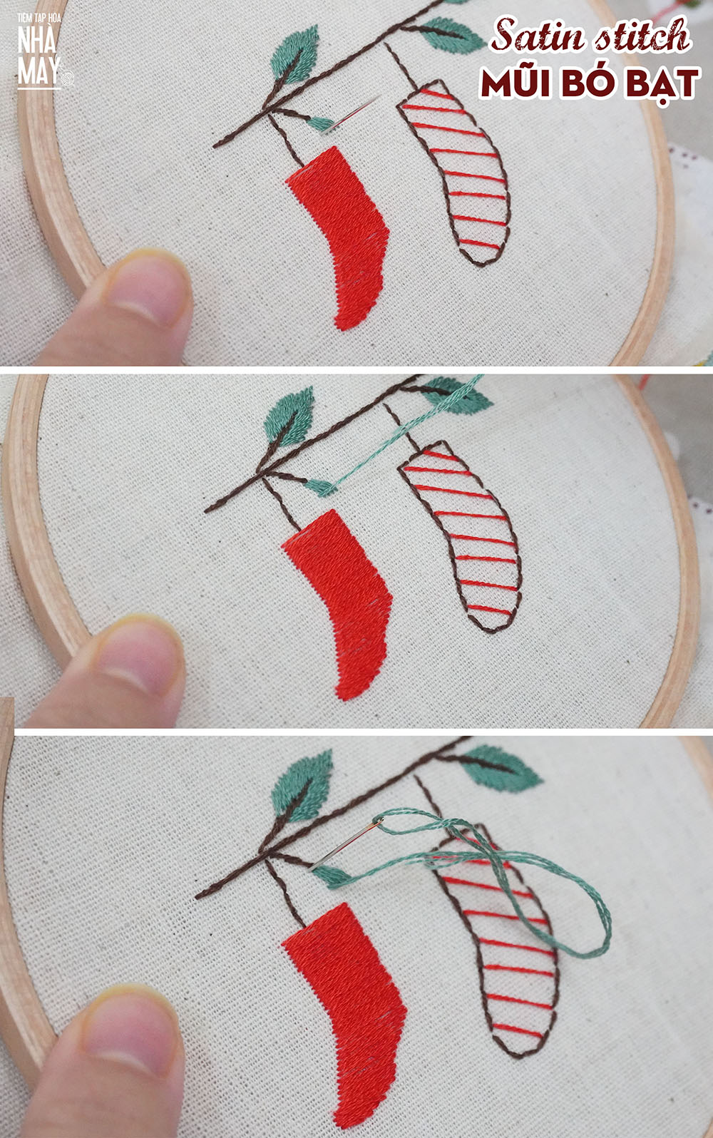 Nếu bạn mới tập thêu nhưng vẫn muốn cầm kim chỉ lên đón Giáng Sinh thì hãy thêu ngay với Tiệm nè. Một mẫu thêu đơn giản không hề cầu kì, lại dễ biến tấu cho những ai muốn sáng tạo để hình thêu của mình độc đáo hơn. Lần này Tiệm sử dụng các mũi straight stitch, lướt vặn (stem stitch) và bó bạt (satin stitch) nha.