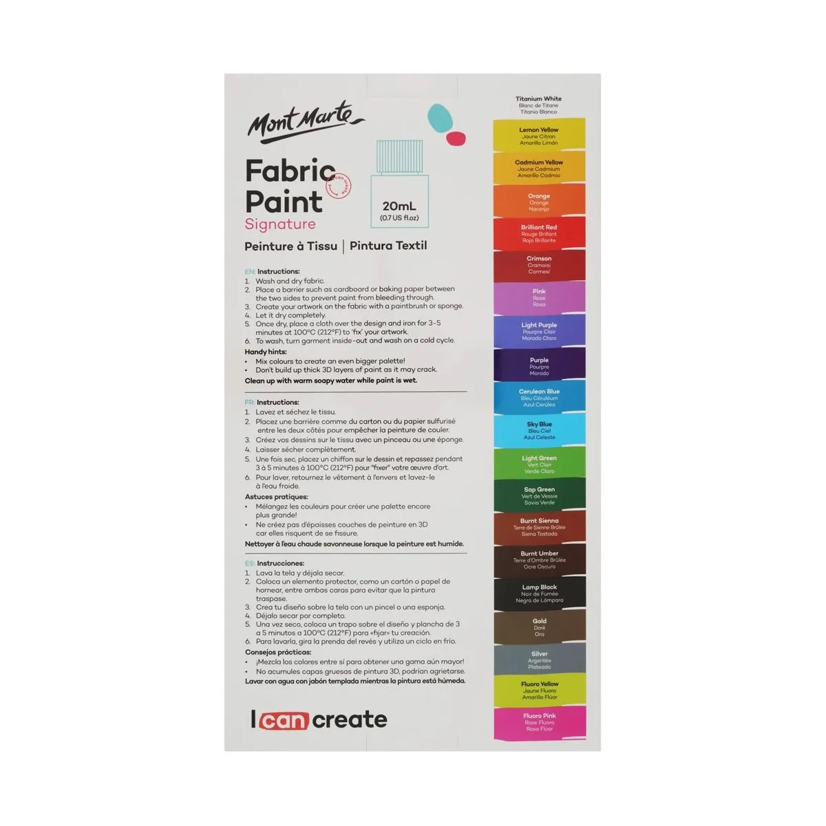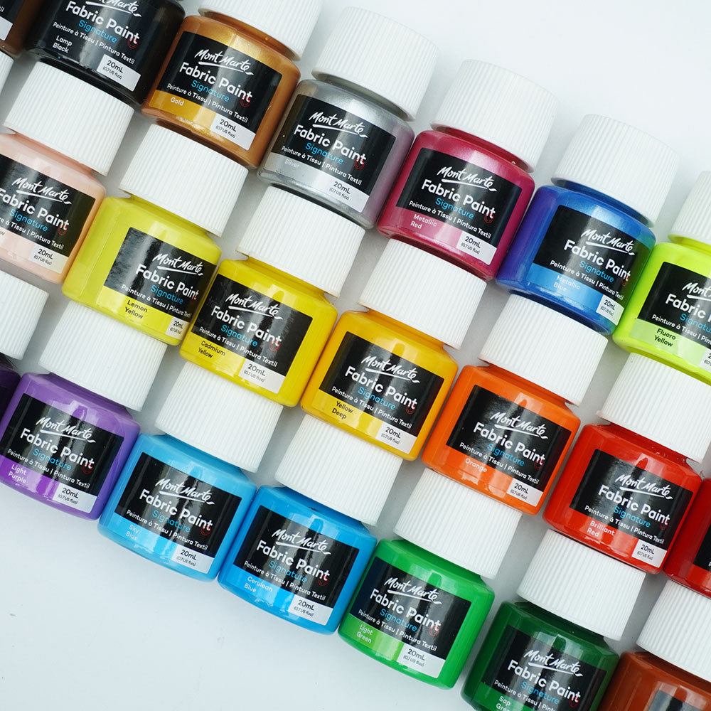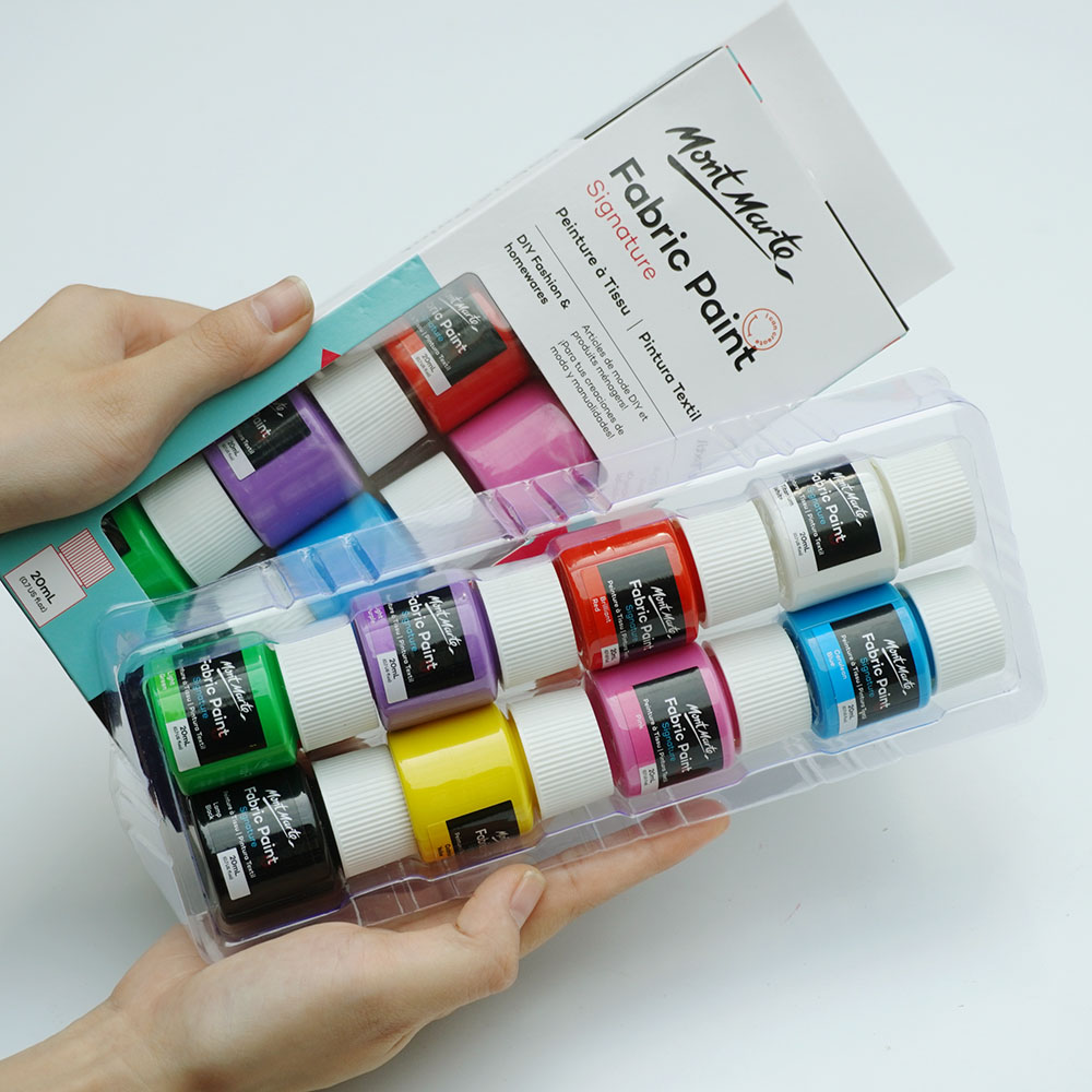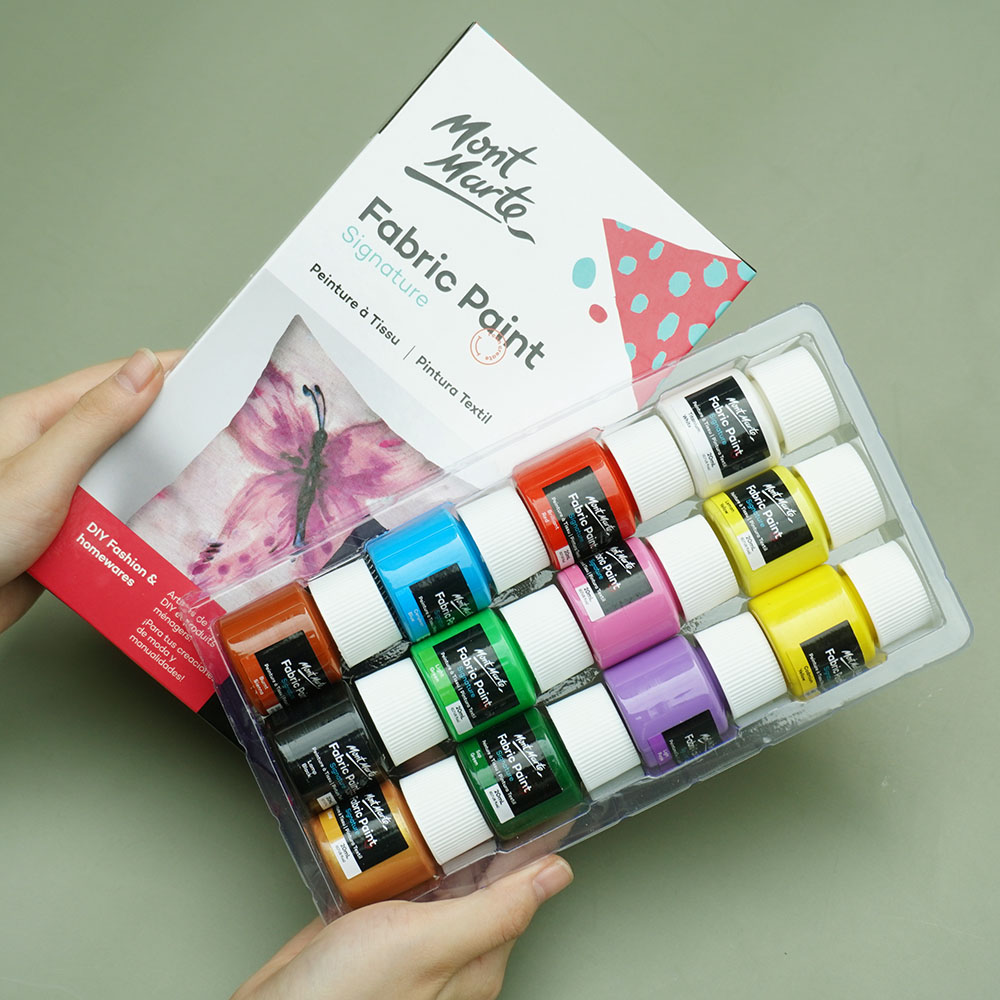 Màu vẽ Fabric Paint hãng Mont Marte chuyên dụng để vẽ lên vải, quần áo, giày vải và các phụ kiện bằng vải khác.
