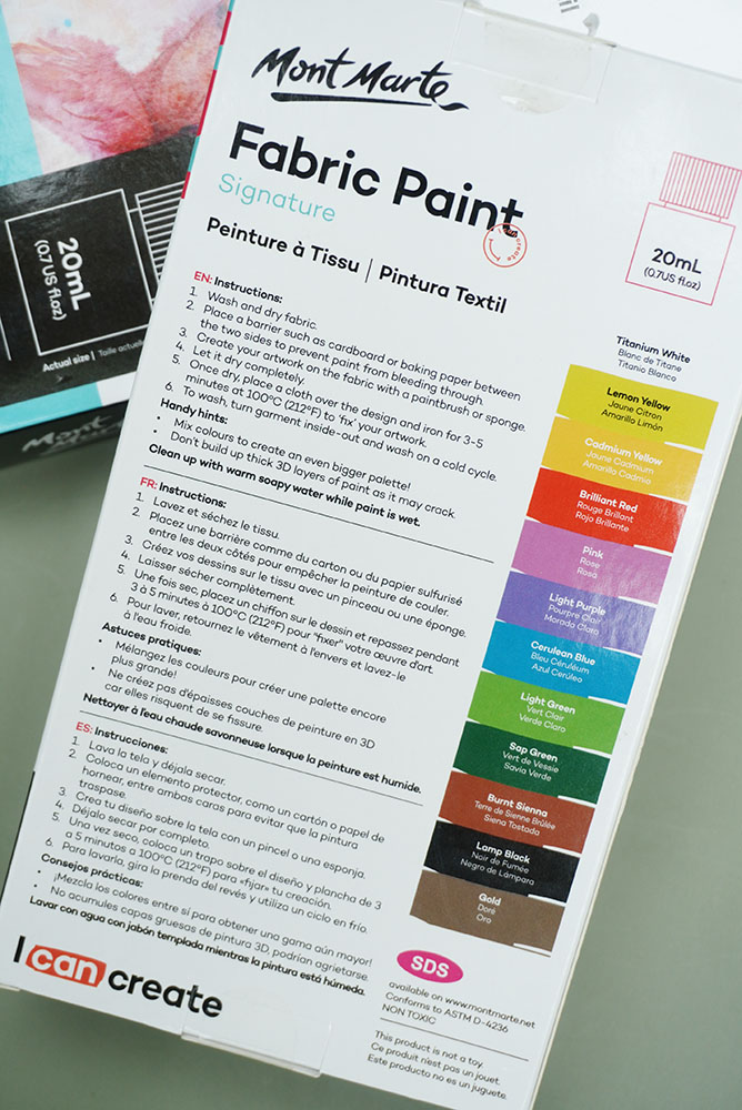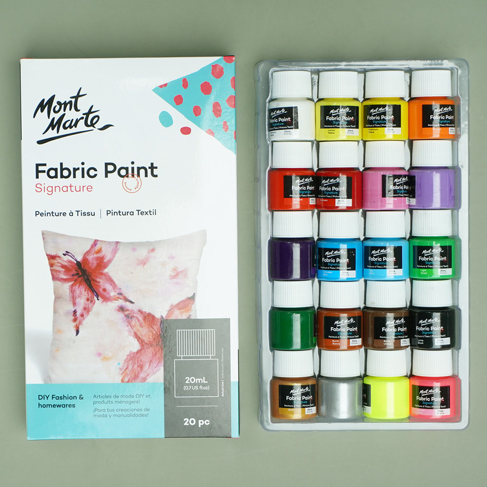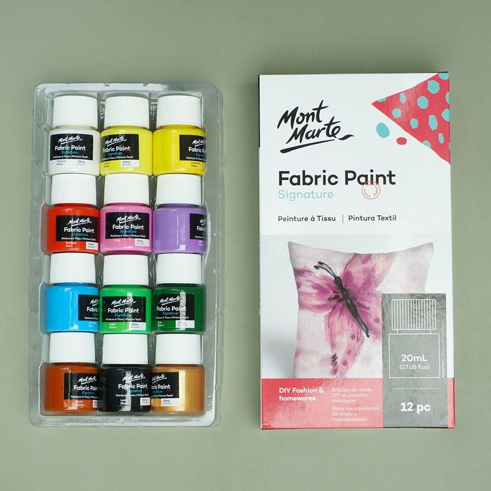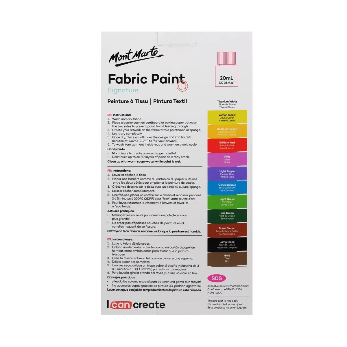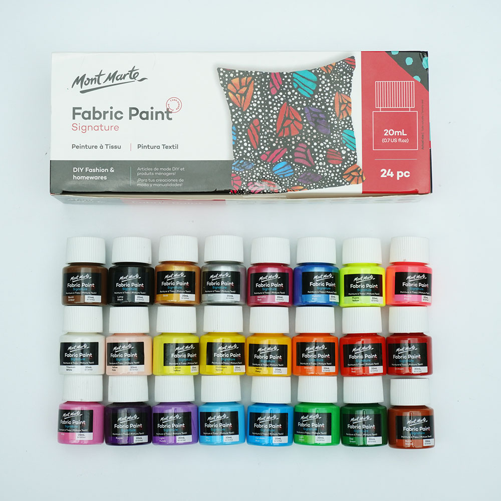 Màu vẽ Fabric Paint hãng Mont Marte chuyên dụng để vẽ lên vải, quần áo, giày vải và các phụ kiện bằng vải khác.