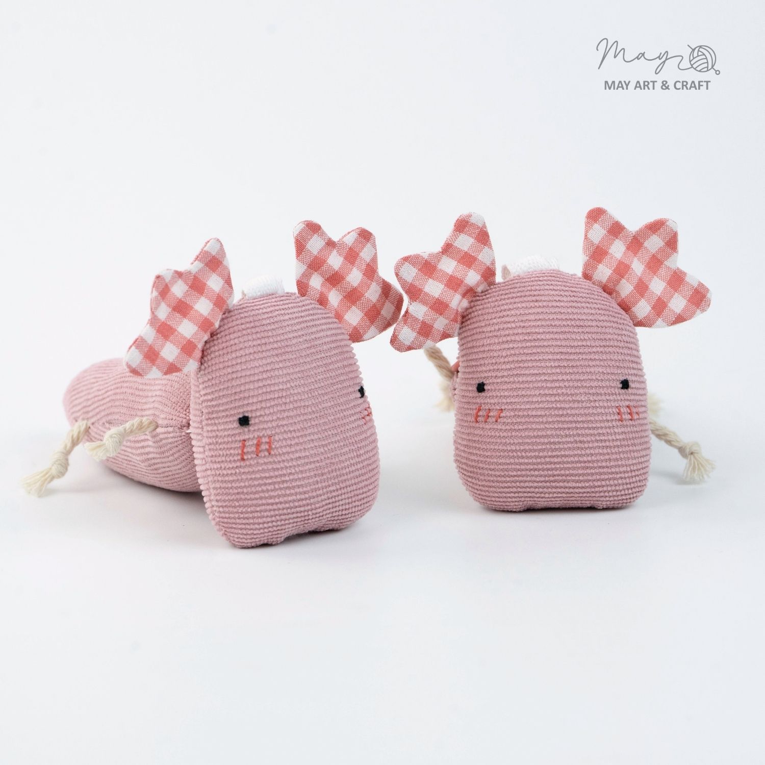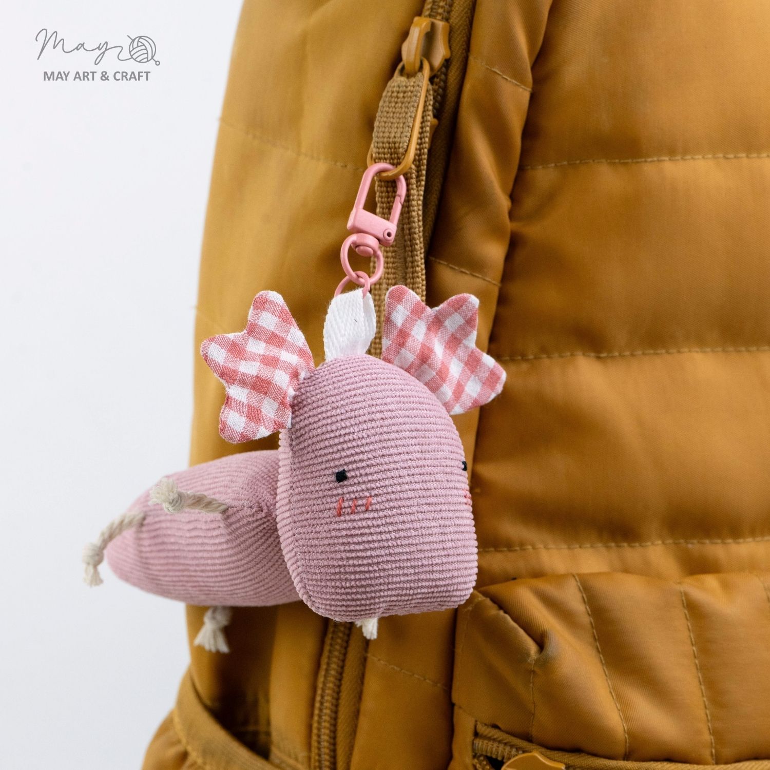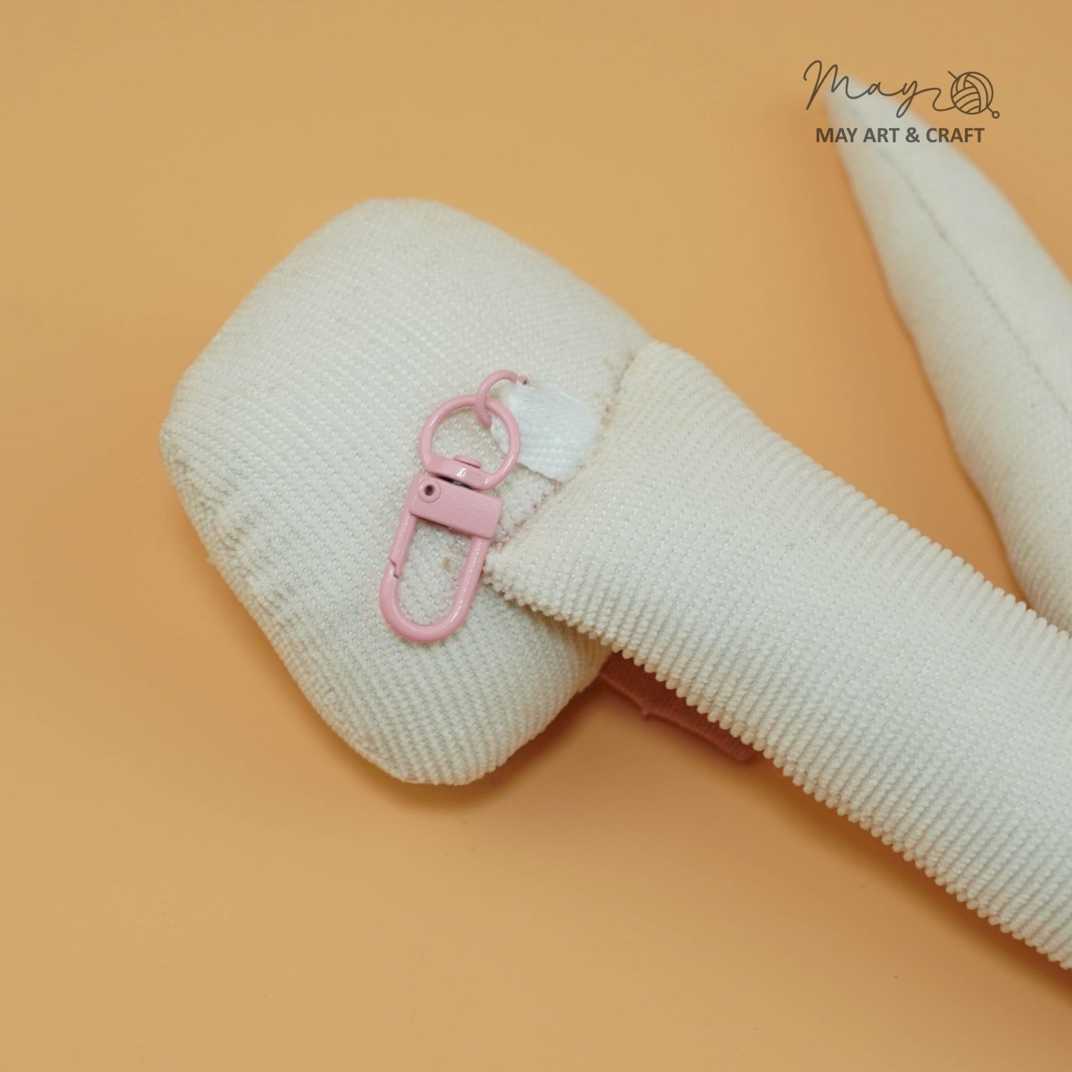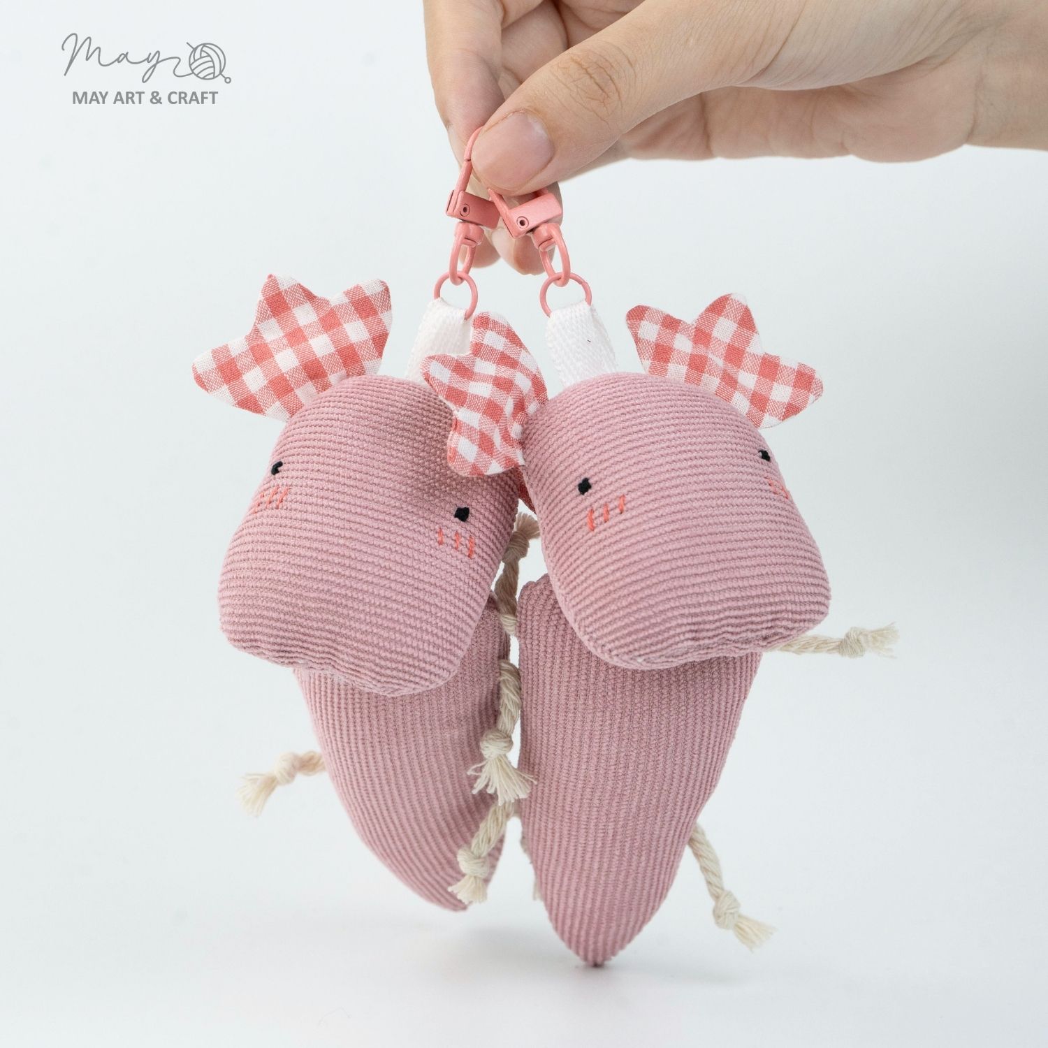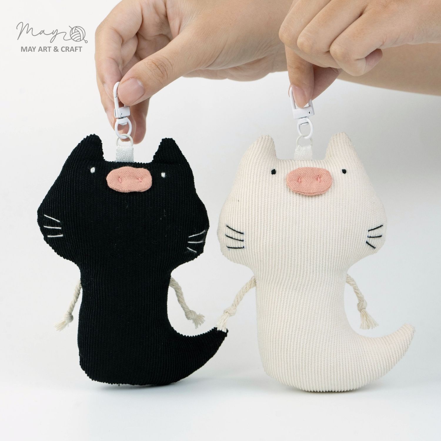 Móc khóa thú bông vải - dòng sản phẩm mới của Tiệm tạp hoá nhà May bao gồm 1 thú bông vải được làm từ vải nhung tăm nhồi bông, họa tiết mặt thêu tay và 01 móc khoá càng tôm đi kèm (màu ngẫu nhiên trắng hoặc hồng).