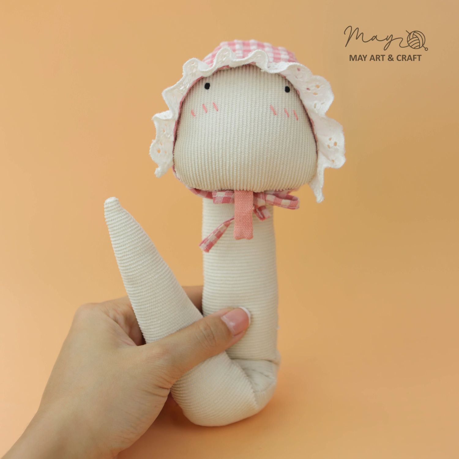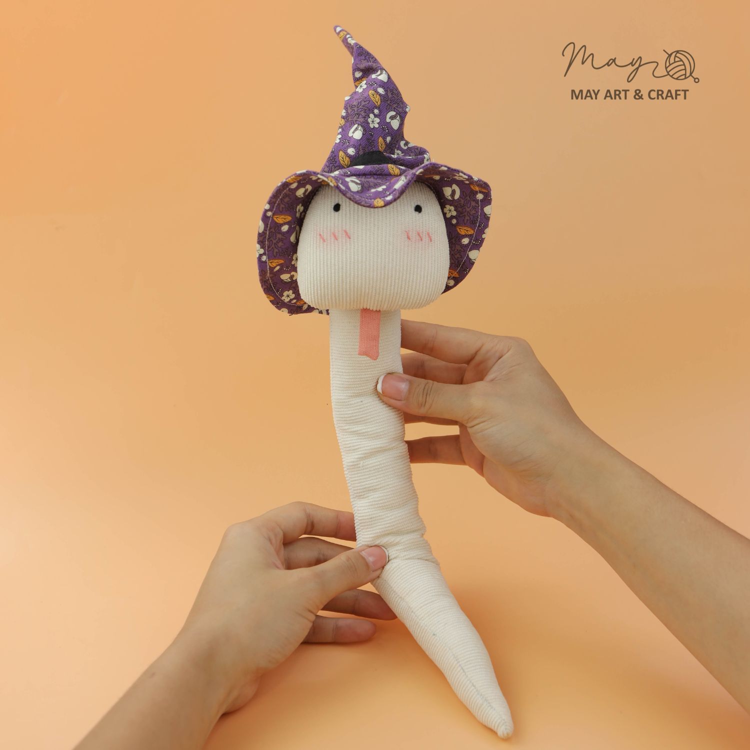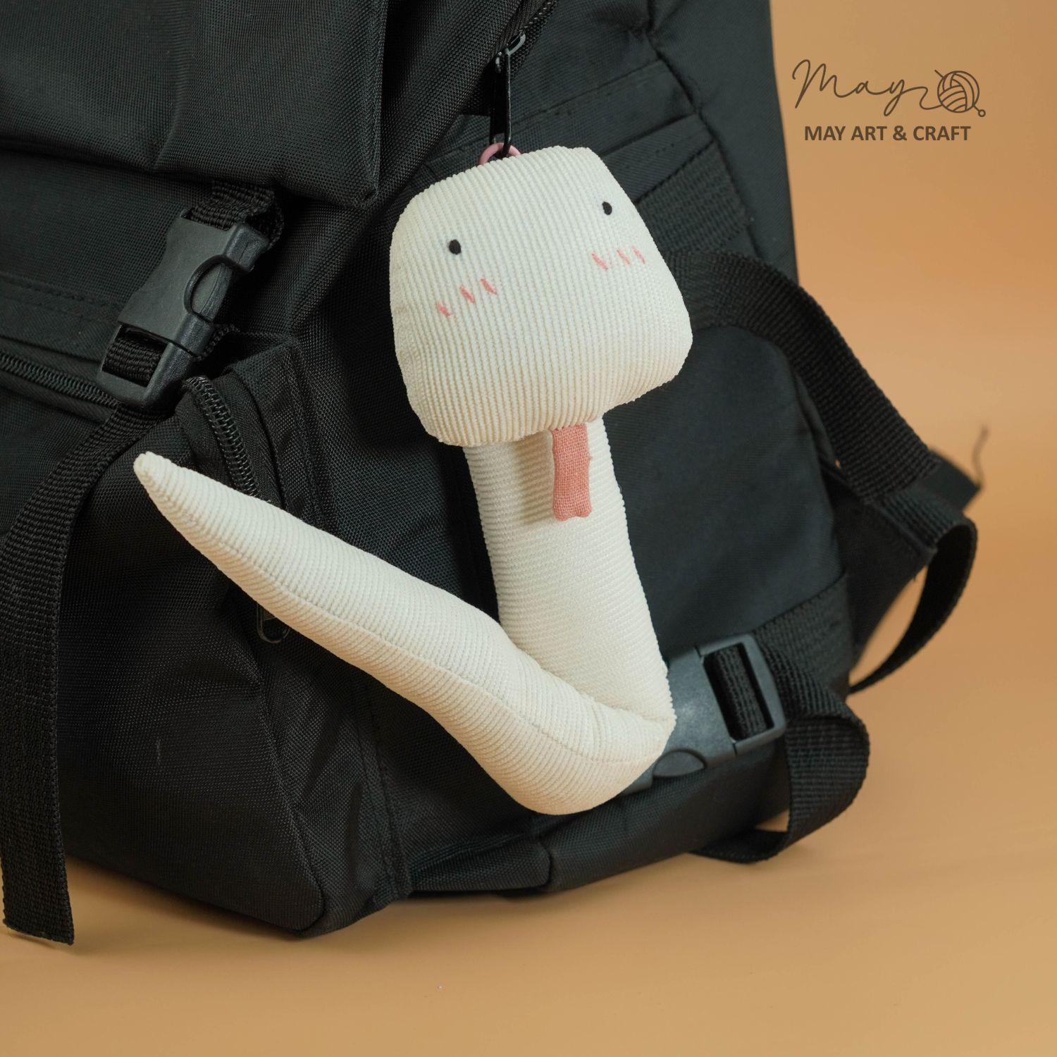 Riêng móc khoá rắn có hình dáng gốc là dạng thẳng, tuy nhiên bạn hoàn toàn có thể tự tạo dáng và khâu cố định dáng một cách đơn giản (kéo xuống dưới cùng để xem video hướng dẫn khâu tạo dáng cho bé rắn nha). Sản phẩm có thể kết hợp với 1 số phụ kiện và trang phục trong bộ sưu tập quần áo cho thú bông vải của Tiệm tạp hoá nhà May như mũ phù thủy, mũ bonet. Tuy nhiên sẽ không khít hoàn toàn nên nếu muốn cố định không bị rơi có thể khâu đính vào. Quần áo nhà May khá rộng và vừa với các bé thú bông lớn hơn, vì vậy nếu chọn trang phục cho bé rắn thì vẫn có thể mặc được nhưng sẽ không vừa khít, quý khách hàng vui lòng cân nhắc trước khi chọn.