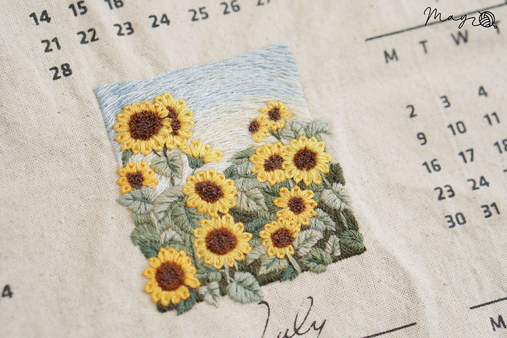 Một vườn hoa hướng dương thu nhỏ trên tấm lịch vải