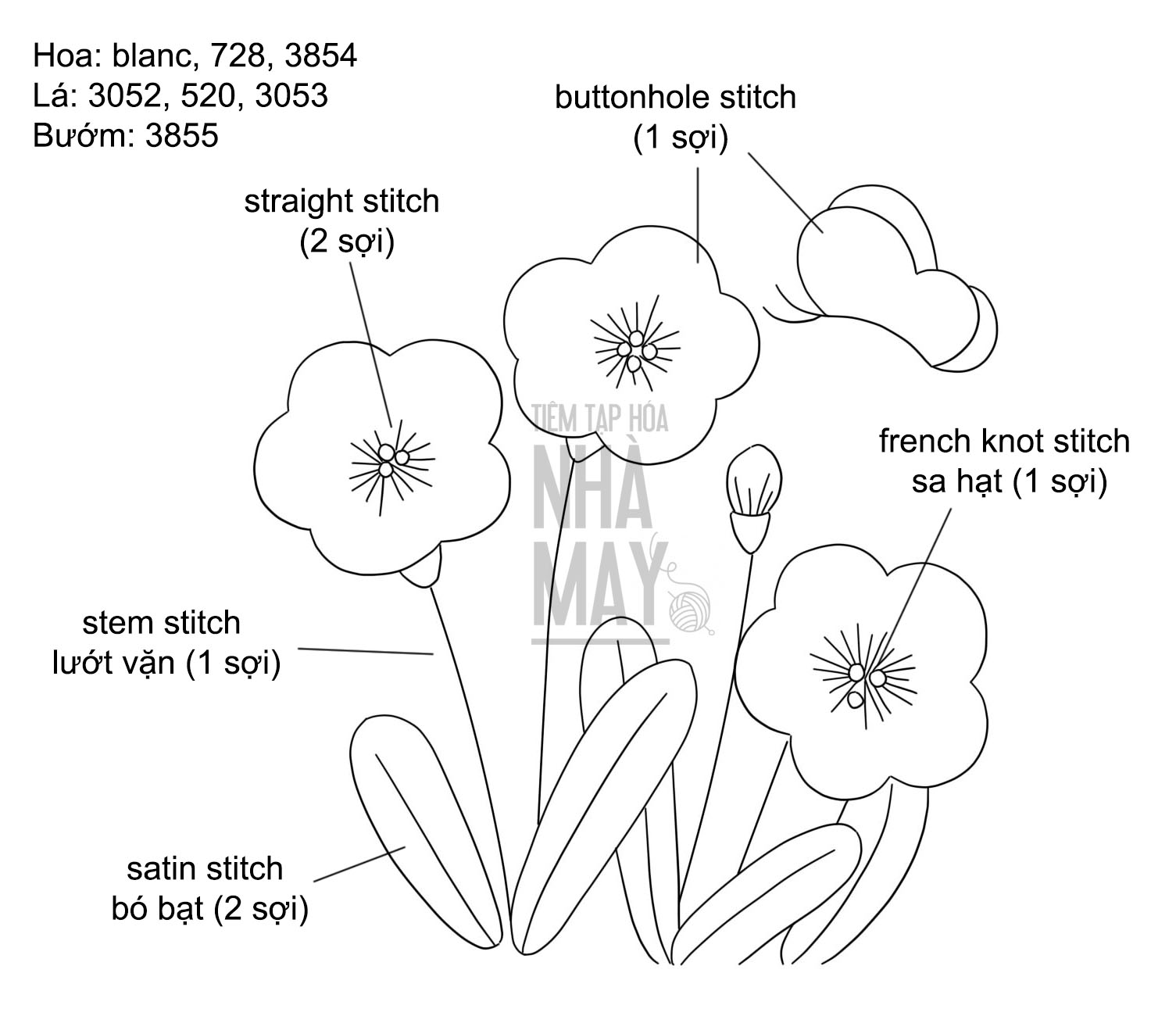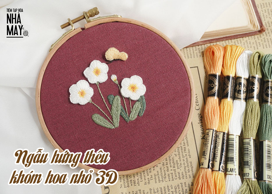Ngẫu hứng thêu khóm hoa nhỏ 3D (có mẫu in)