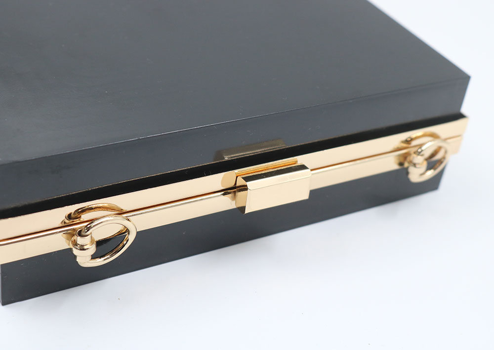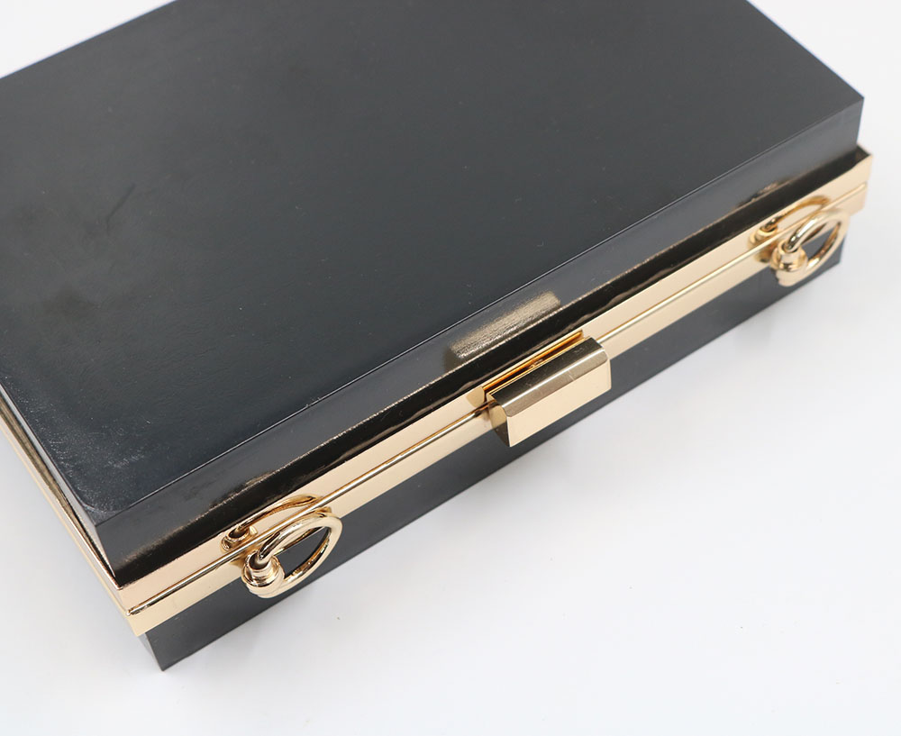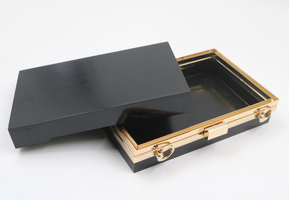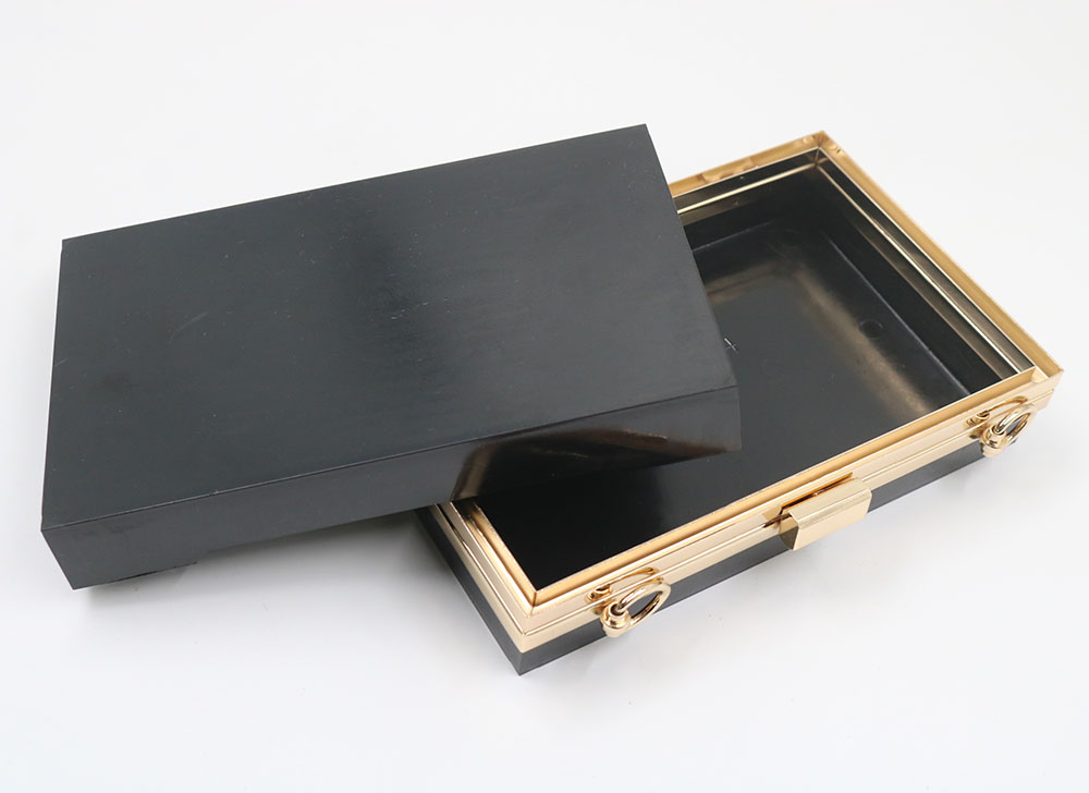 Phôi hộp hình chữ nhật, bản lề bằng kim loại mạ vàng có chốt khóa chắc chắn. Khung bản lề vuông vắn, trơn đẹp, chắc chắn.