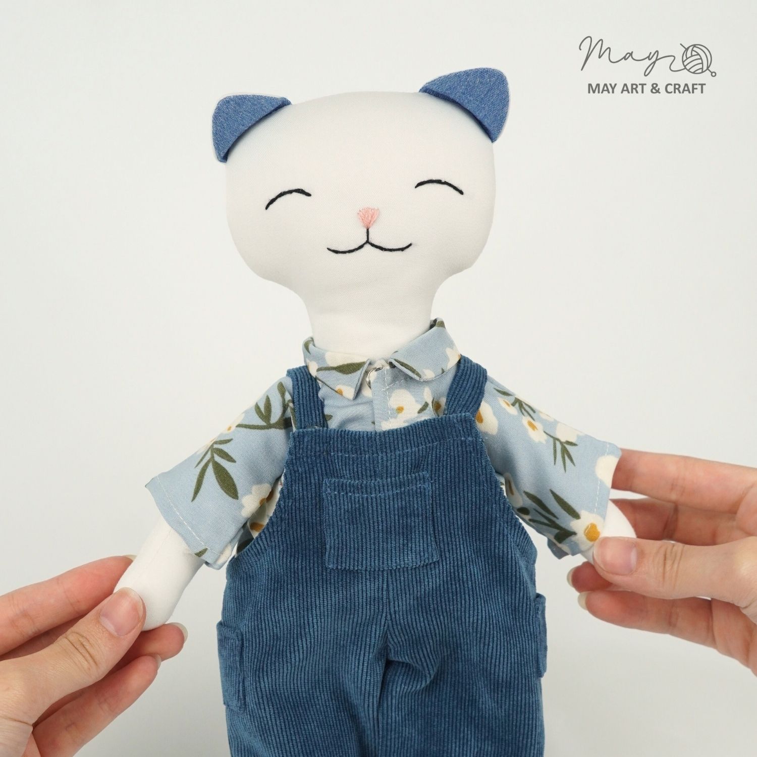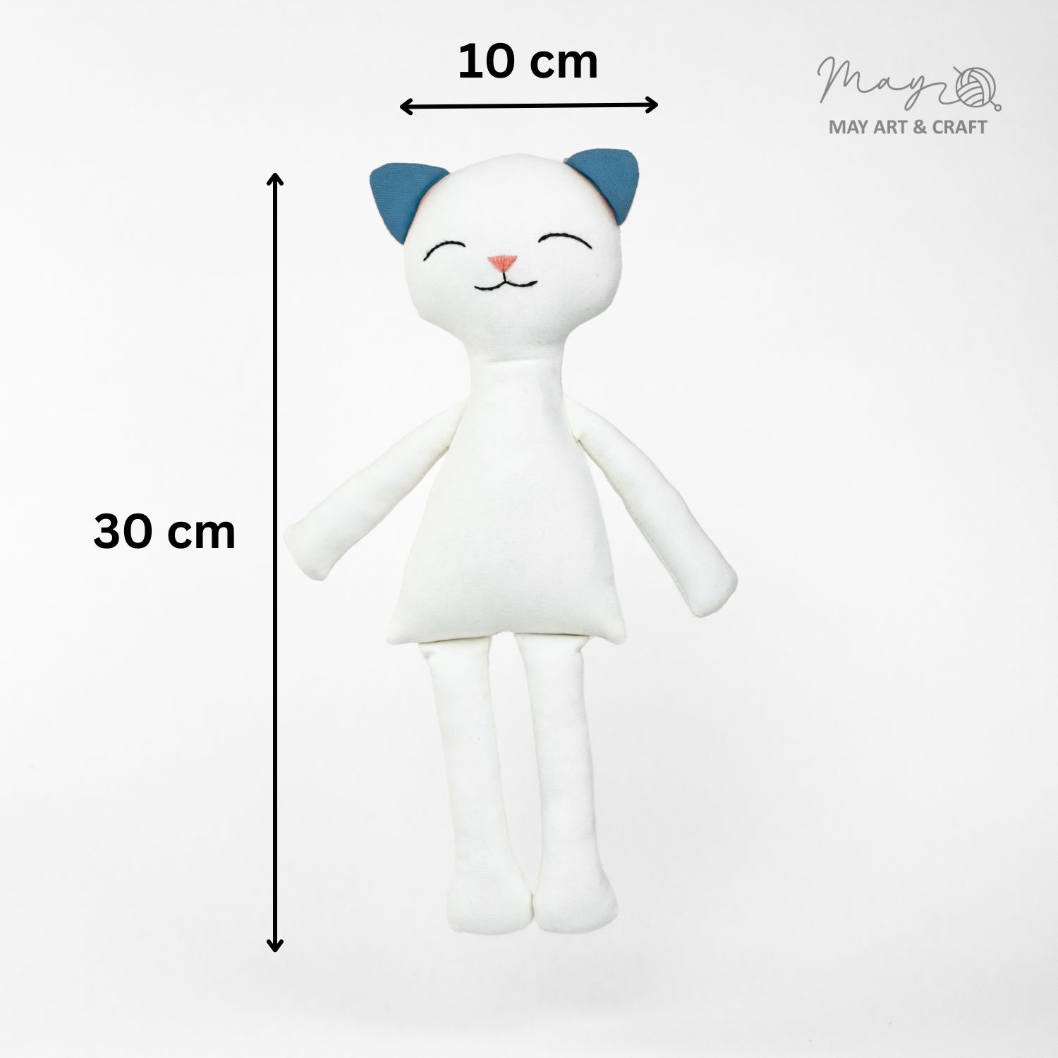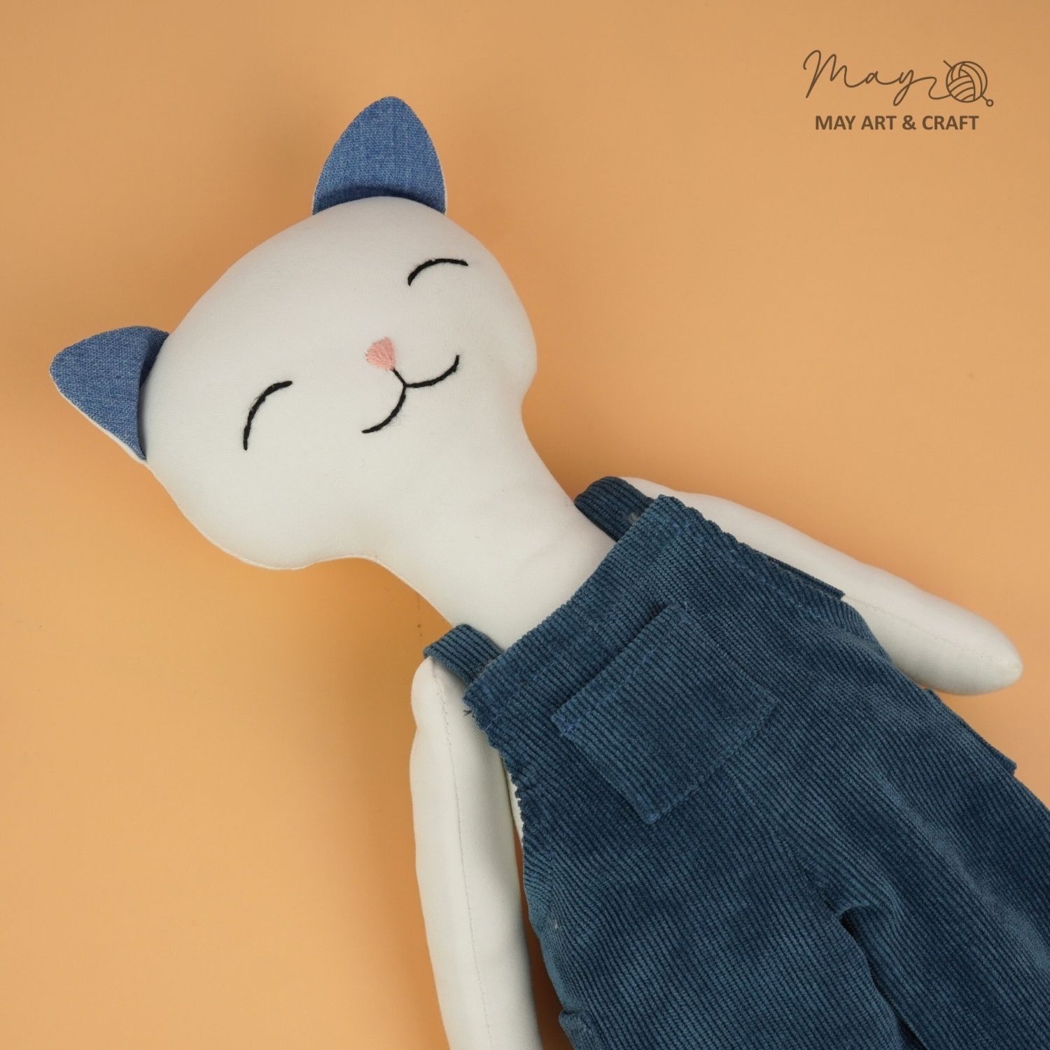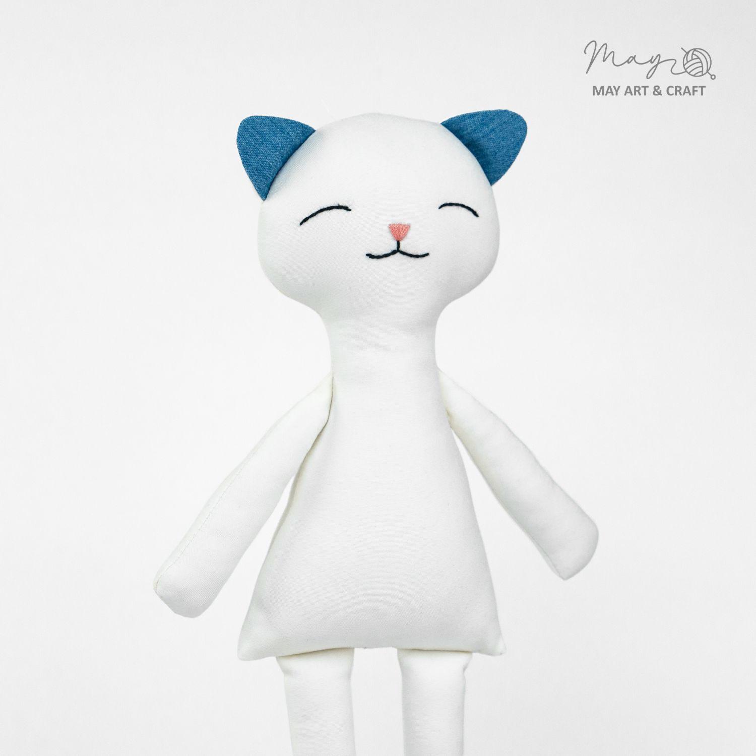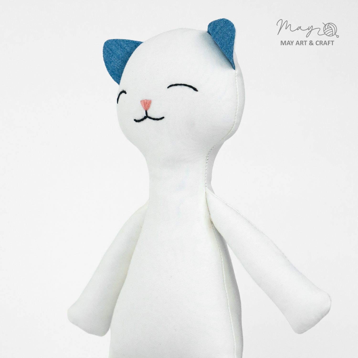 Phôi mèo bông trắng tai xanh nằm trong bộ sưu tập phôi thú bông vải - dòng sản phẩm mới của Tiệm tạp hoá nhà May. Phôi thú bông được may từ vải kaki cao cấp, có kích thước khoảng 30cm, phù hợp với các loại trang phục phụ kiện thú bông khác của Tiệm.