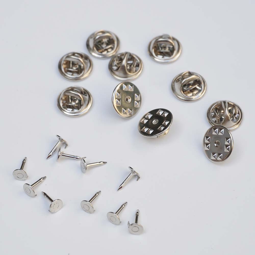 Phôi ghim cài gồm 1 đinh ghim có đầu dẹt để gắn vào các sản phẩm nhựa co nhiệt, đất sét... và 1 chốt tròn cố định.