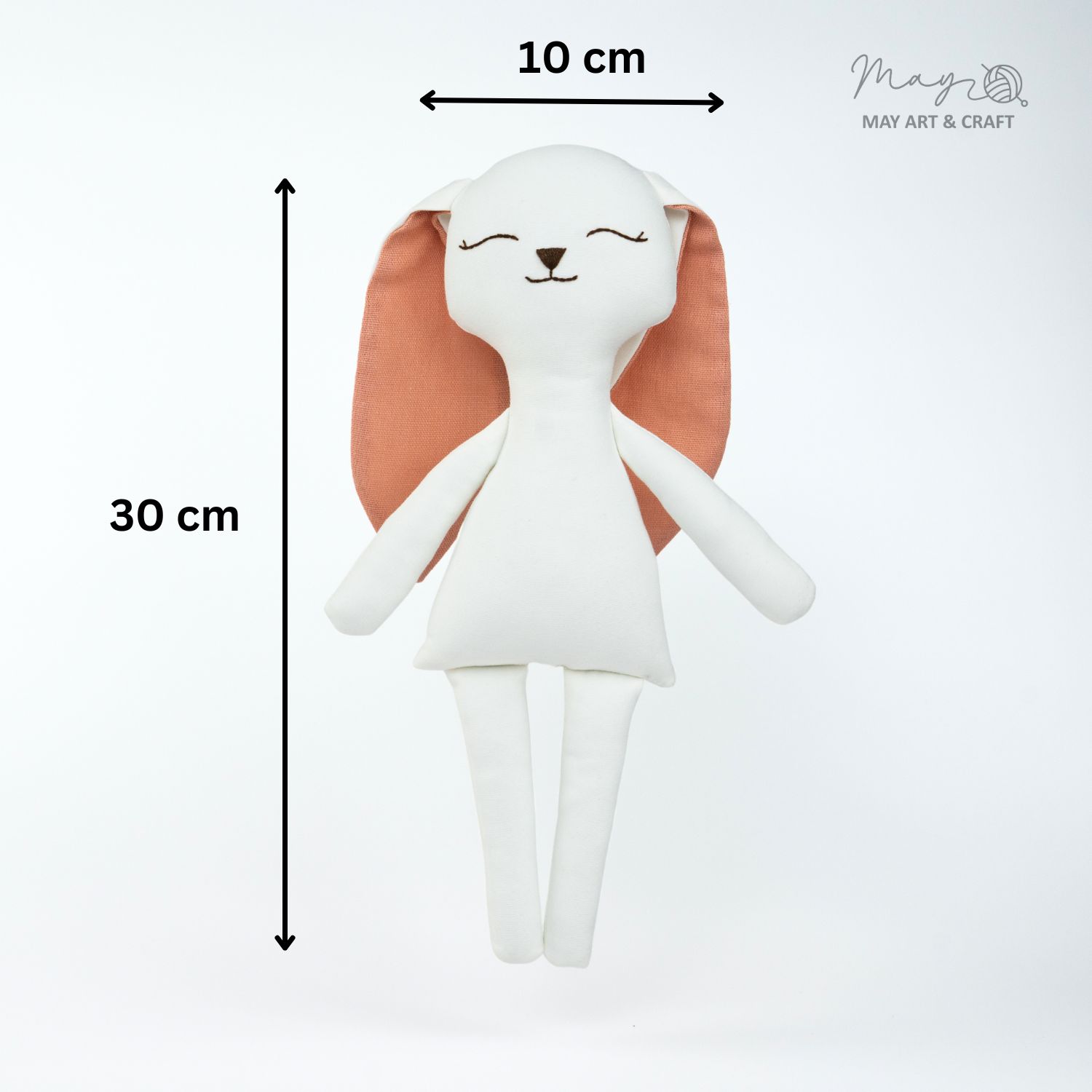 Phôi thỏ bông trắng tai hồng nằm trong bộ sưu tập phôi thú bông vải - dòng sản phẩm mới của Tiệm tạp hoá nhà May. Phôi thú bông được may từ vải kaki cao cấp, có kích thước khoảng 30cm, phù hợp với các loại trang phục phụ kiện thú bông khác của Tiệm.