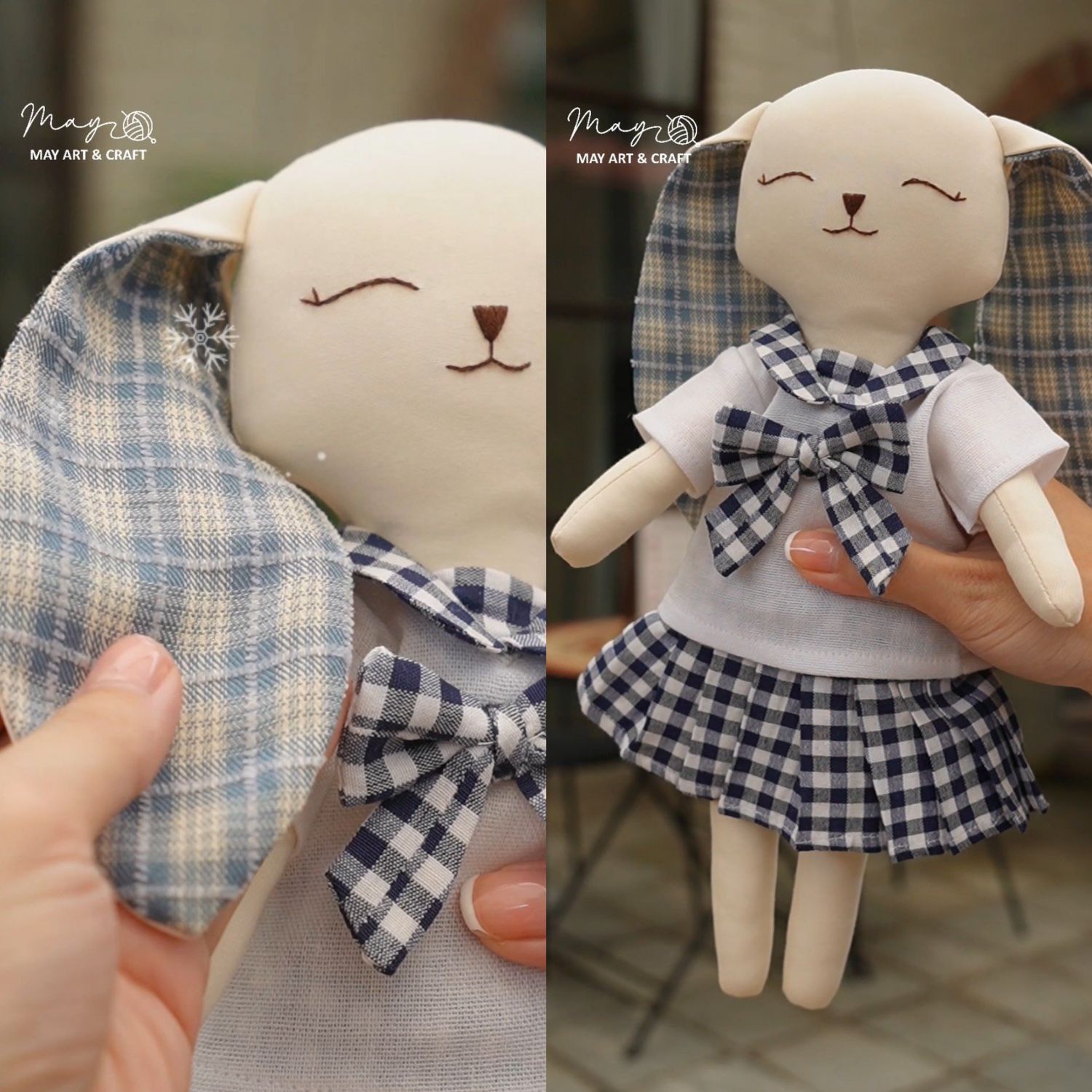 1. Phôi thú bông/búp bê vải của May được làm từ vải kaki nên sẽ không quá mềm như các loại thú bông lông dài khác mà sẽ có độ căng nhất định và cảm giác mịn màng khi chạm vào.