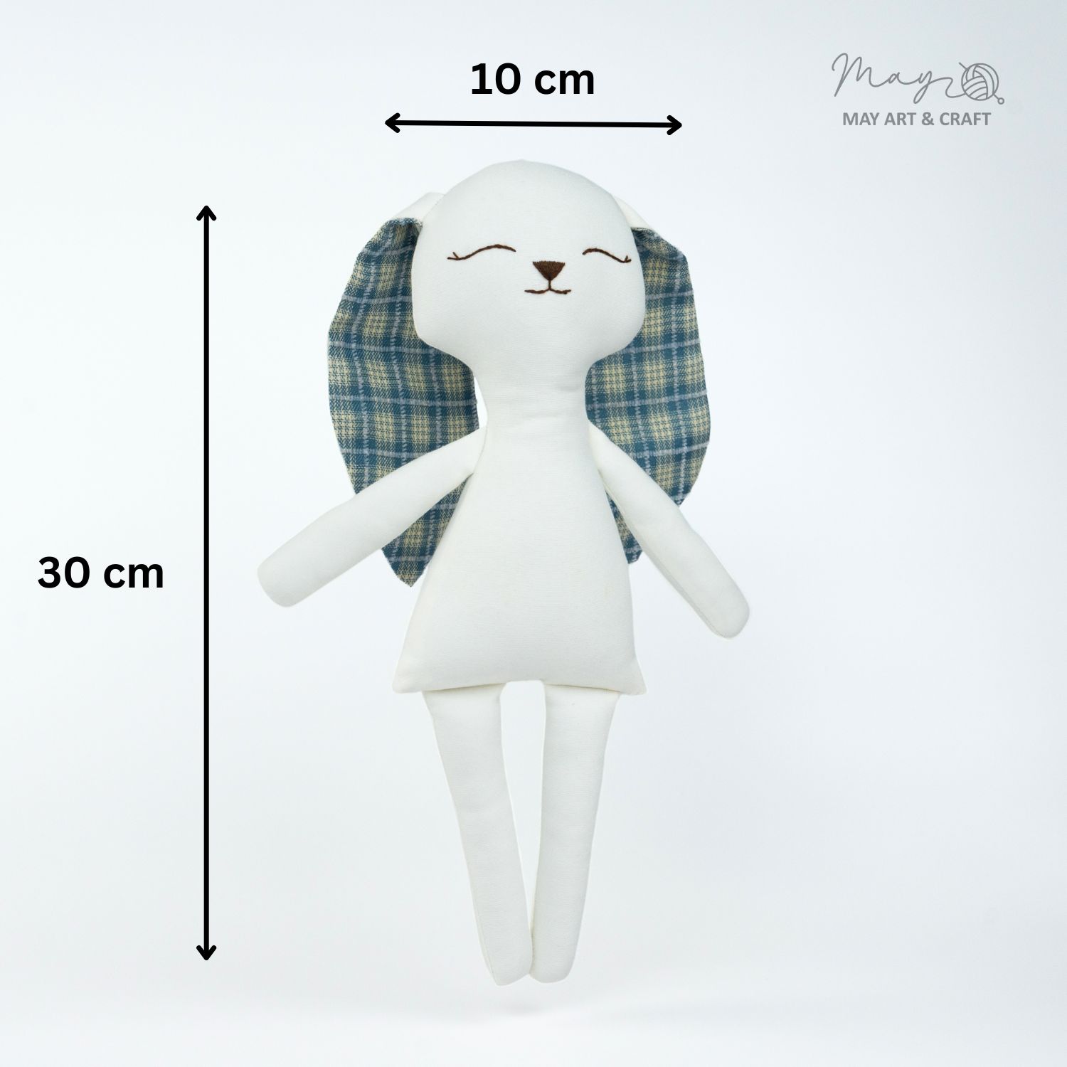Phôi thú bông thỏ tai xanh nằm trong bộ sưu tập phôi thú bông vải - dòng sản phẩm mới của Tiệm tạp hoá nhà May. Phôi thú bông được may từ vải kaki cao cấp, có kích thước khoảng 30cm, phù hợp với các loại trang phục phụ kiện thú bông khác của Tiệm.