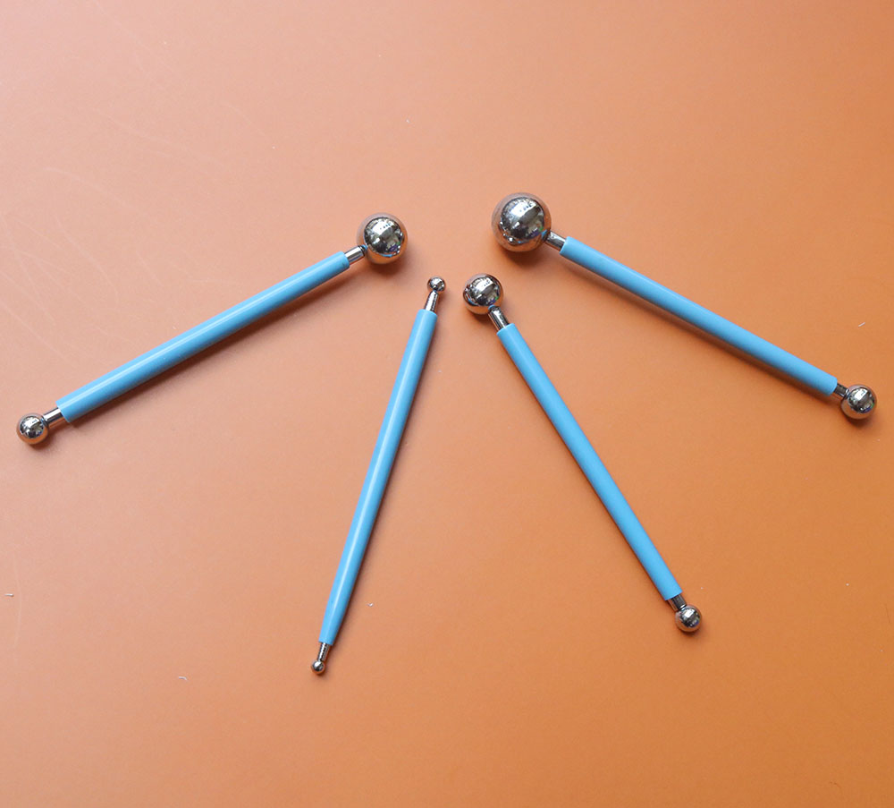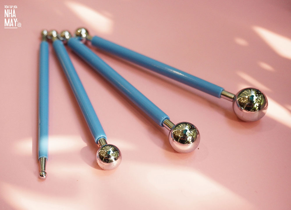 Set dụng cụ bao gồm 4 thanh dài khoảng 12cm, đầu tròn có kích thước từ 4mm - 19mm phù hợp với từng nhu cầu sử dụng, chất liệu thép không gỉ bọc một lớp cao su dày dặn giúp cách nhiệt trong quá trình sấy bằng khò nhiệt.