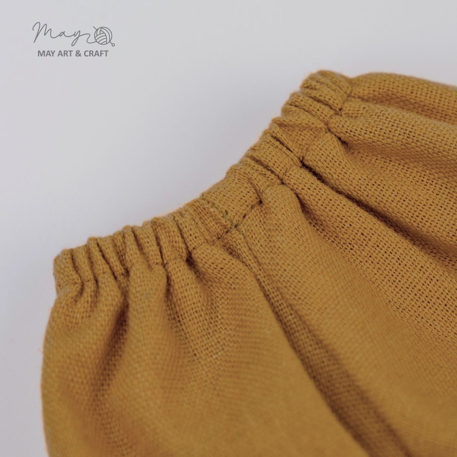 Quần dáng bí ngô là sản phẩm nằm trong BST trang phục thú bông vải của Tiệm tạp hoá Nhà May. Chất liệu vải an toàn, đường may chắc chắn, sản phẩm thường được mua kèm với các loại phôi thú bông của Tiệm để trở thành món quà hoàn hảo cho các bạn nhỏ trải nghiệm thay đồ, phối đồ cho thú bông theo sở thích và phong cách cá nhân vô cùng độc đáo, thú vị.