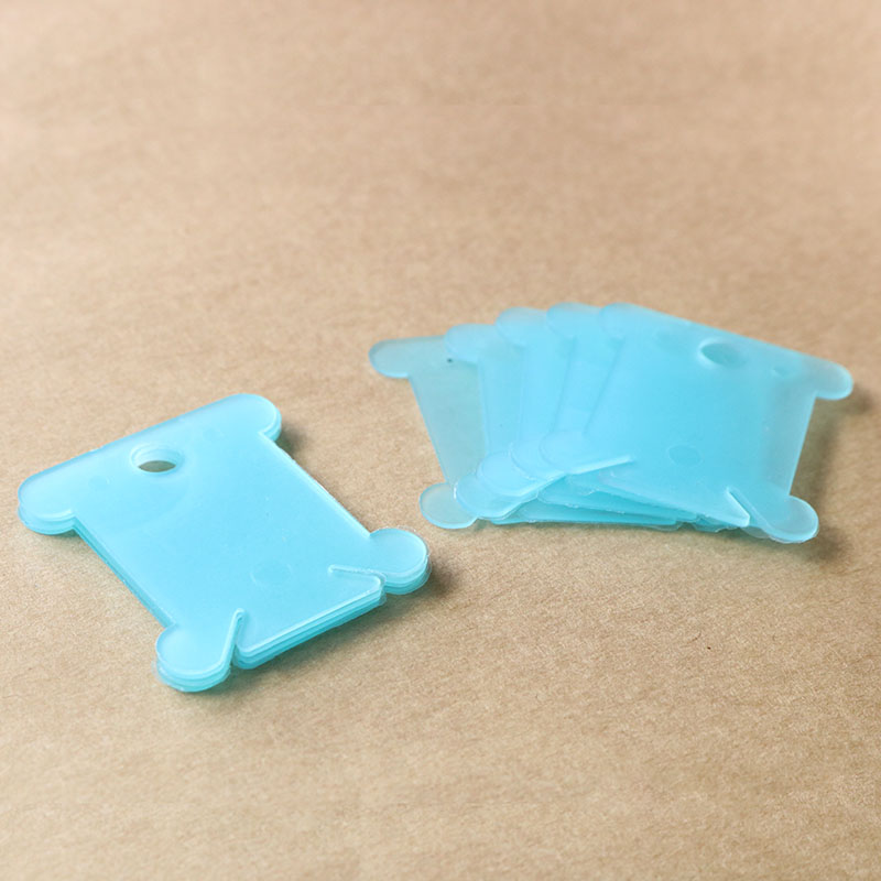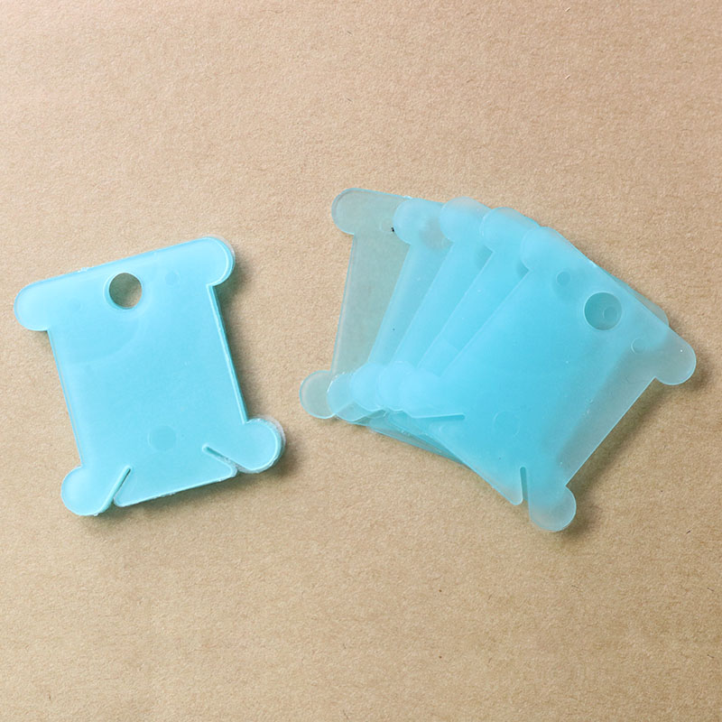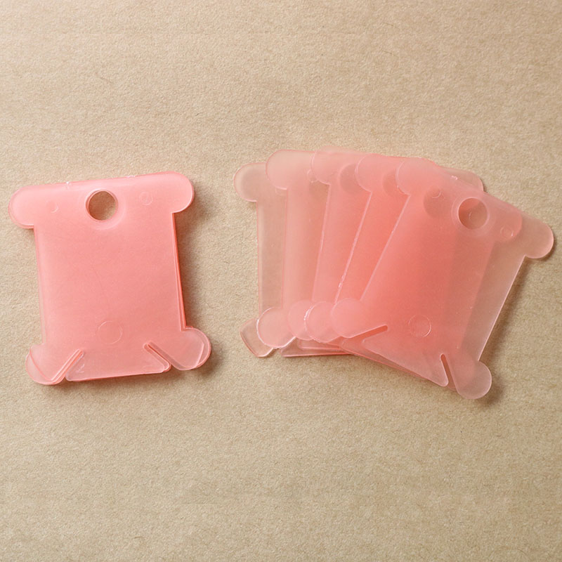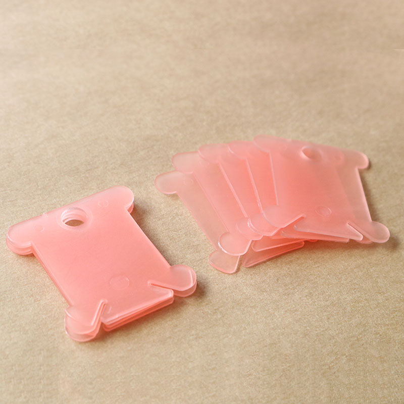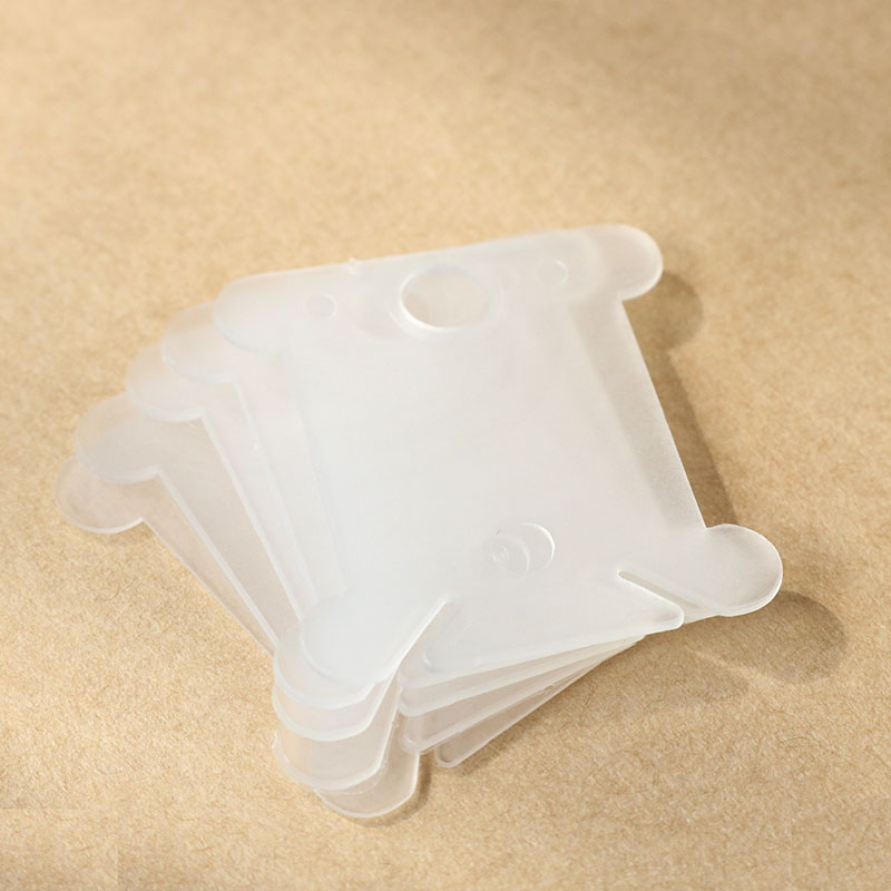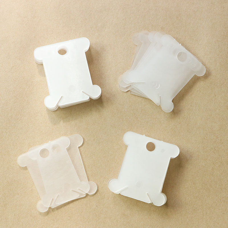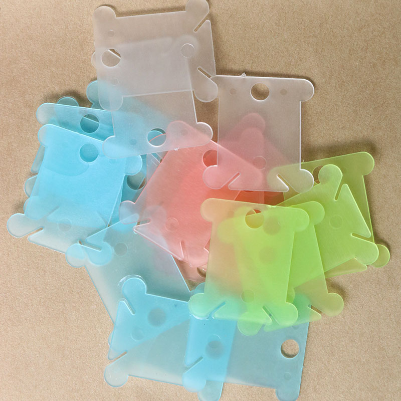 Set gồm 100 miếng cuốn chỉ bằng nhựa màu trong suốt, kích thước 4x3.5 cm.
