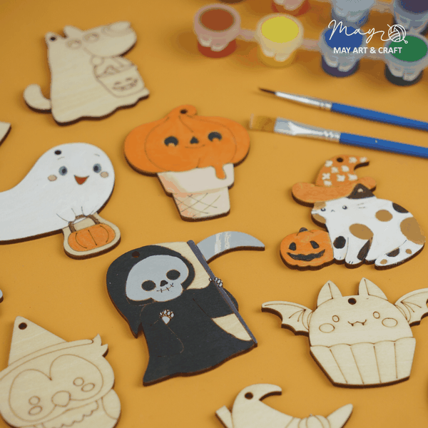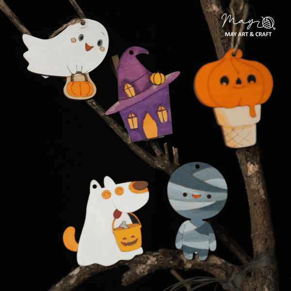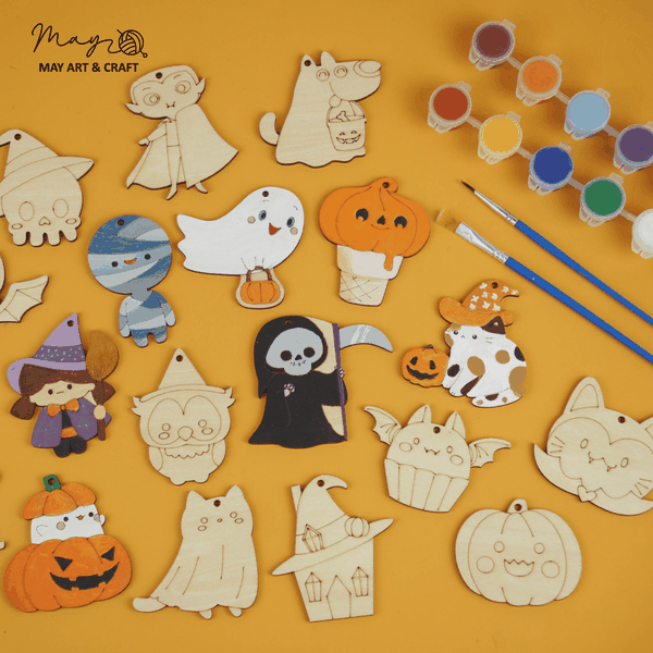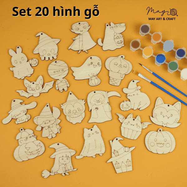 - Set 20 hình gỗ chủ đề Halloween, kích thước 5-8cm