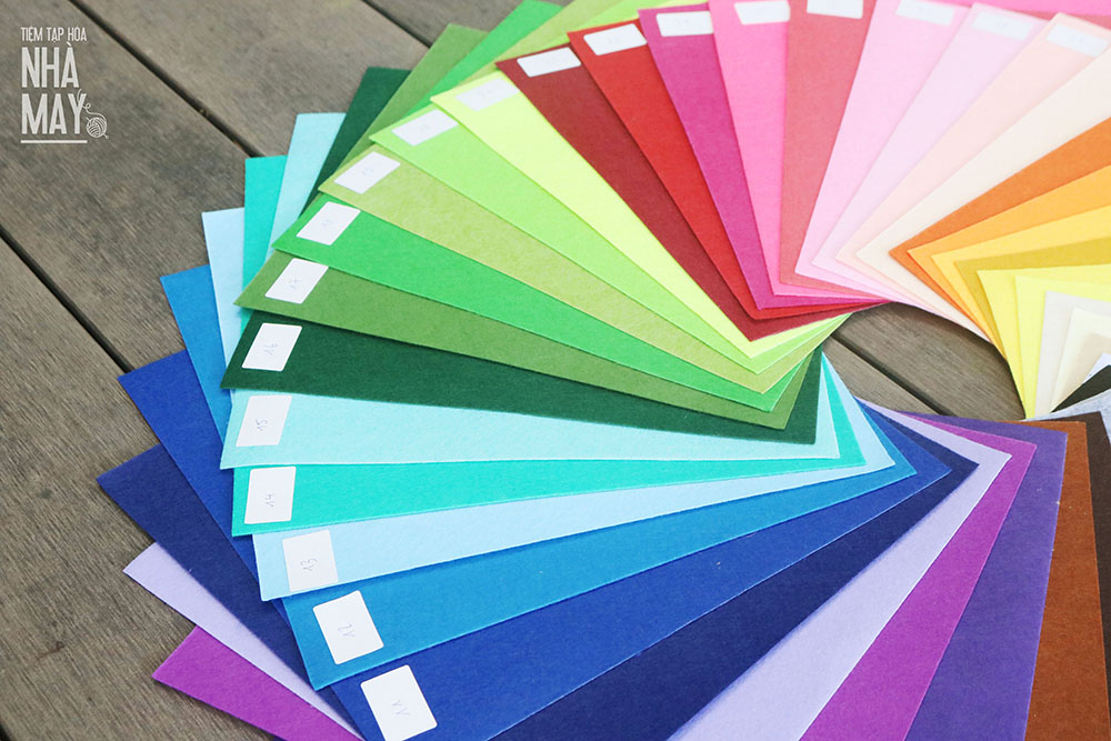 Vải dạ cứng khổ 30x30cm, ứng dụng trong làm thú bông handmade, làm kẹp tóc và các sản phẩm handmade khác.