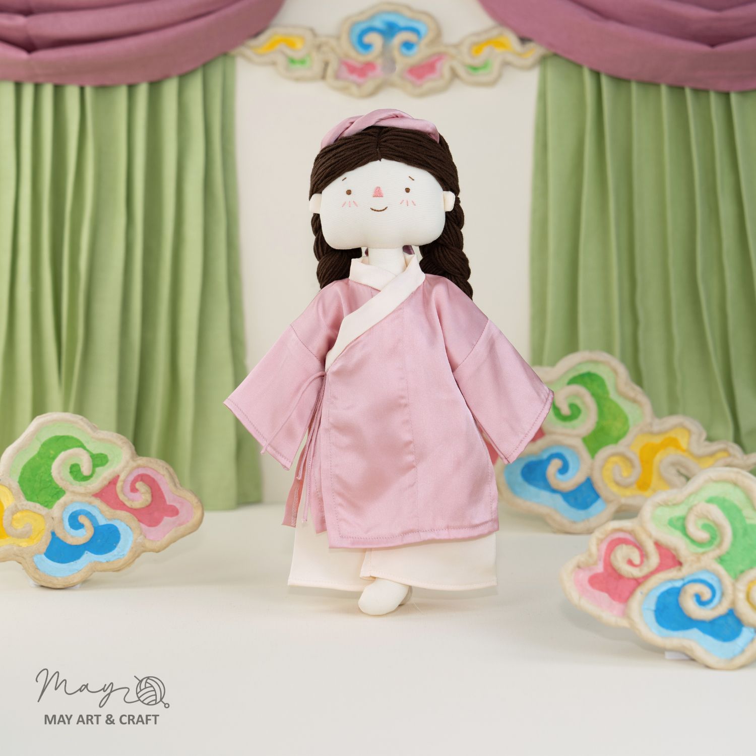 Về kiểu dáng trang phục lấy phong cách Áo Giao Lĩnh của Tiệm May: May giữ những nét đặc trưng của áo giao lĩnh bao gồm cổ áo vắt chéo, dáng suông dài rộng và xẻ tà.Tuy nhiên May có biến đổi một chút về quần phối với áo Giao Lĩnh và phụ kiện. Thời nhà Lê thì đàn ông sẽ mặc áo giao lĩnh với khố còn phụ nữ mặc với váy quây không gấp nếp và đội nón lớn. Ở đây May biến tấu 1 chút phần quần cả nam và nữ đều mặc được là quần ống rộng và thay nón lớn bằng khăn mấn xoắn.