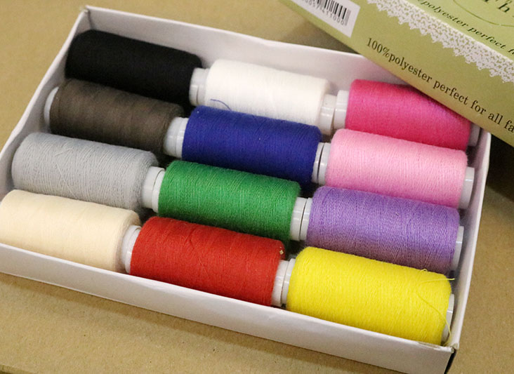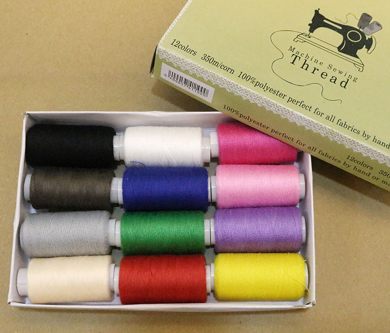 Set chỉ may 12 cuộn với 12 màu cơ bản, sợi chỉ bền, ít thấm nước, thích hợp cho cả máy may công nghiệp và khâu tay.