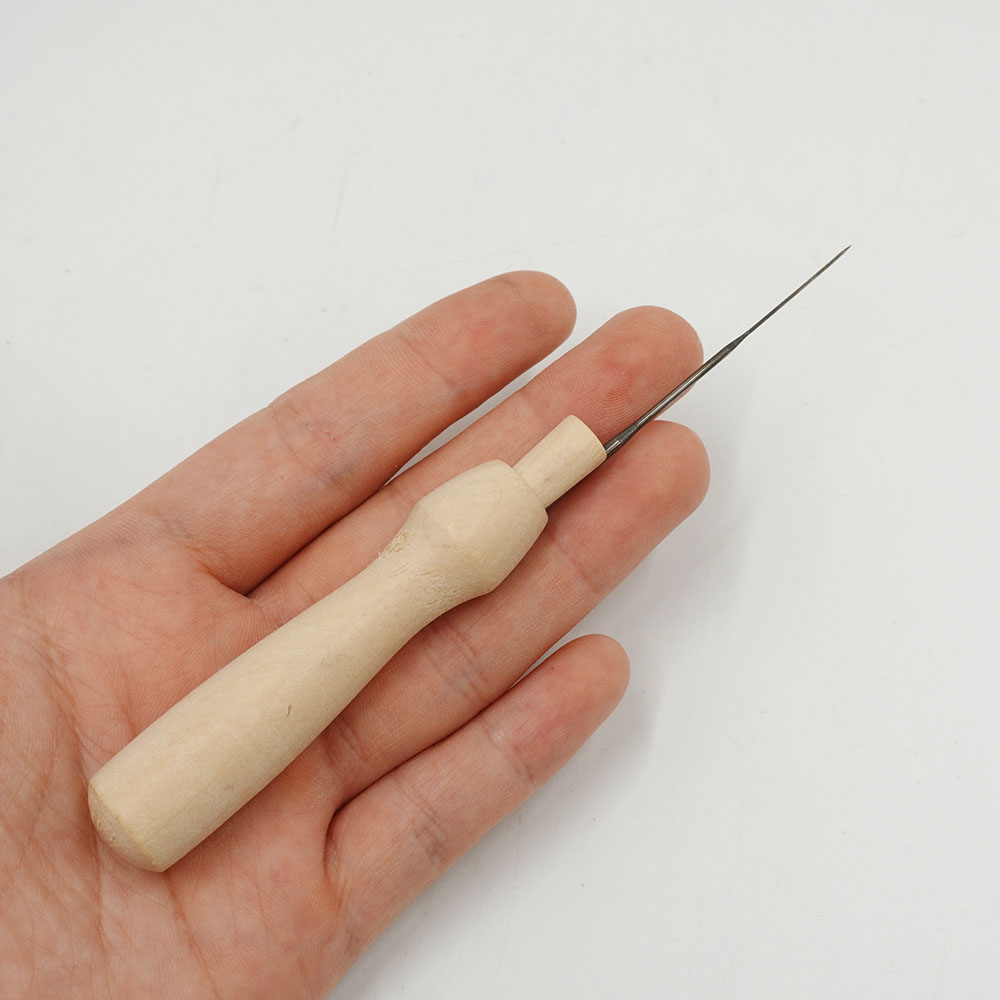 4. Kim chọc len chất liệu gỗ, nhỏ gọn, chắc chắn, dễ dàng sử dụng và thay kim. Thân cán dài 8cm, kèm 1 kim chọc len 8cm