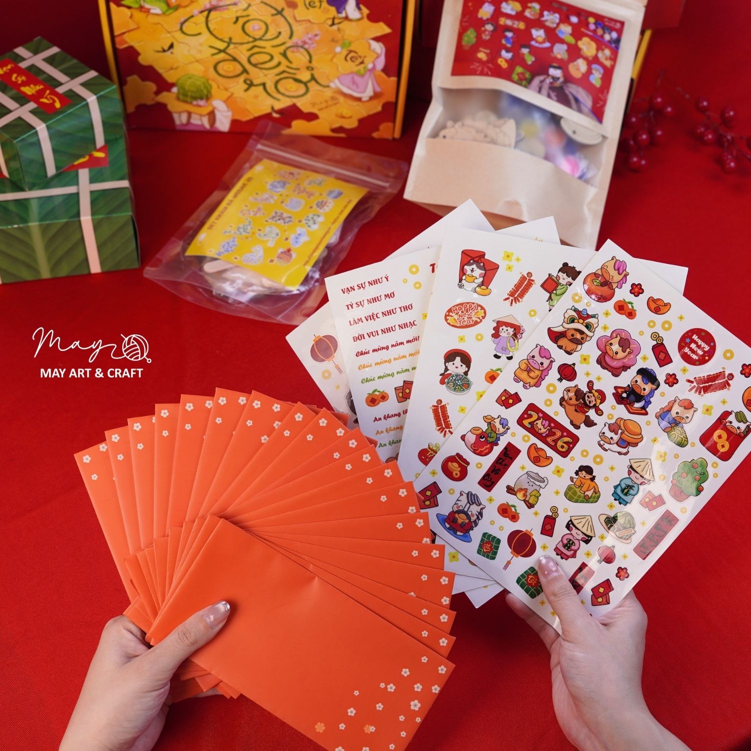 - Set trang trí lì xì tết gồm 20 phôi lì xì và hơn 150 stickers chủ đề tết.