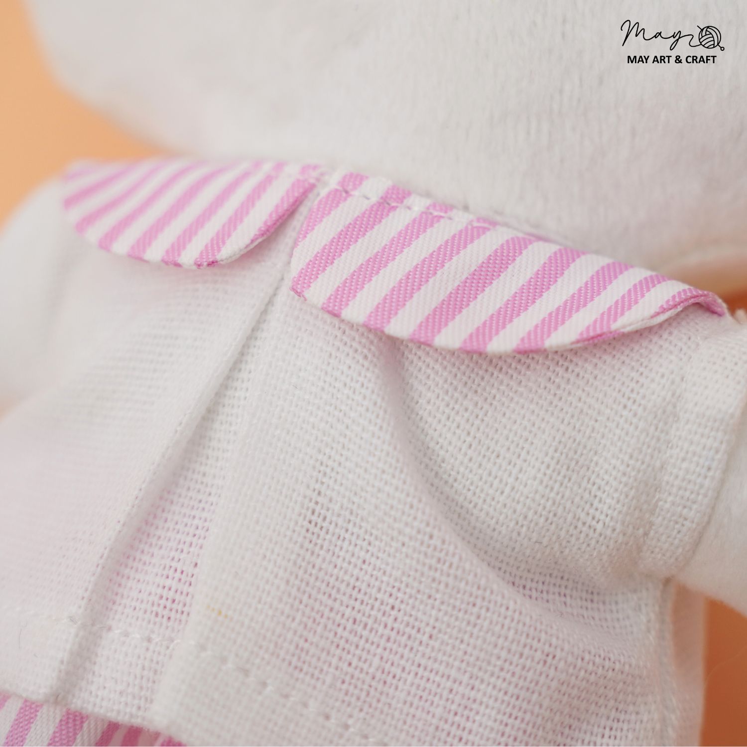 Áo cổ sen: Điểm nhấn nhẹ nhàng nhưng kì công, cúc bấm phía sau giúp mặc đồ cho thú bông dễ hơn.