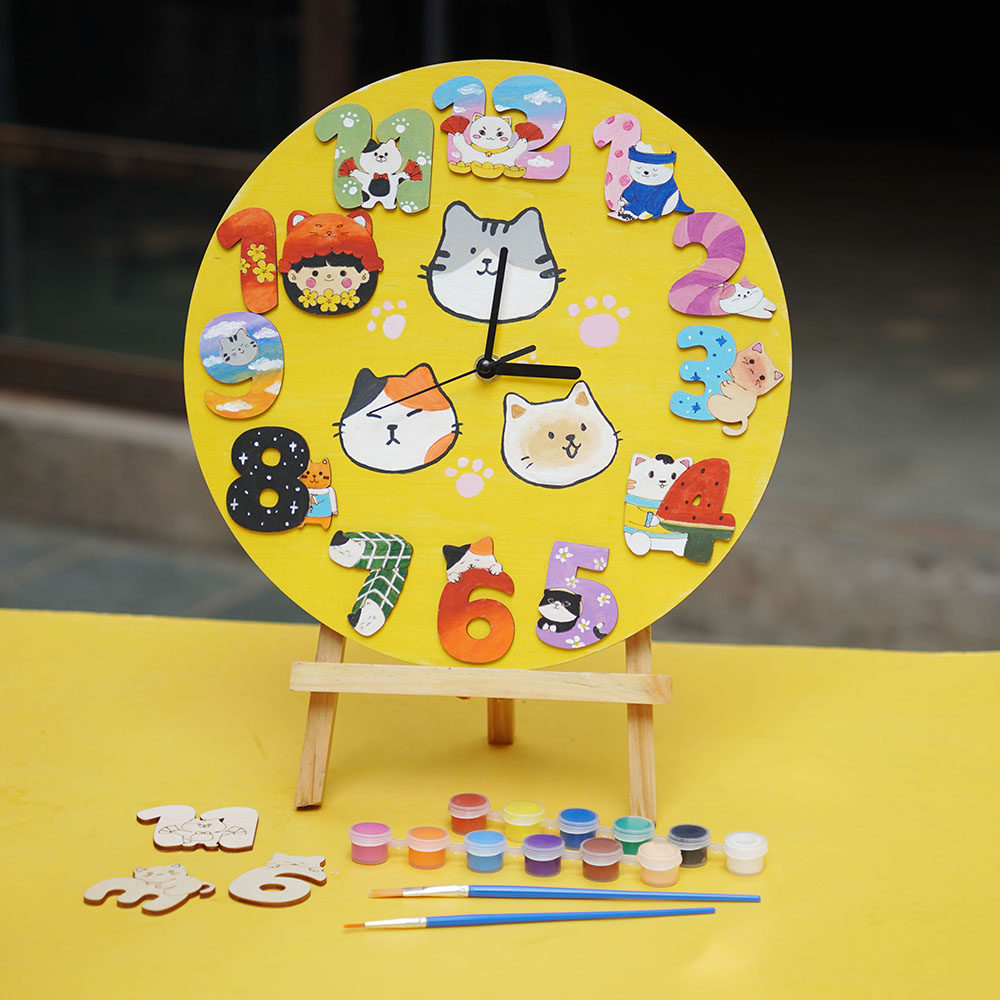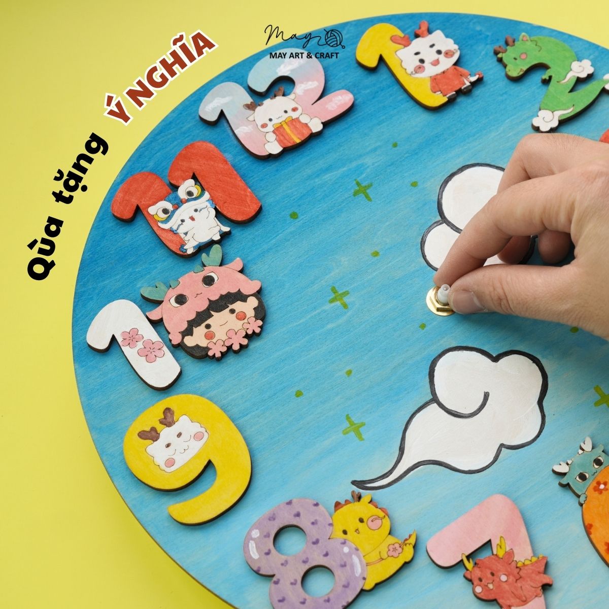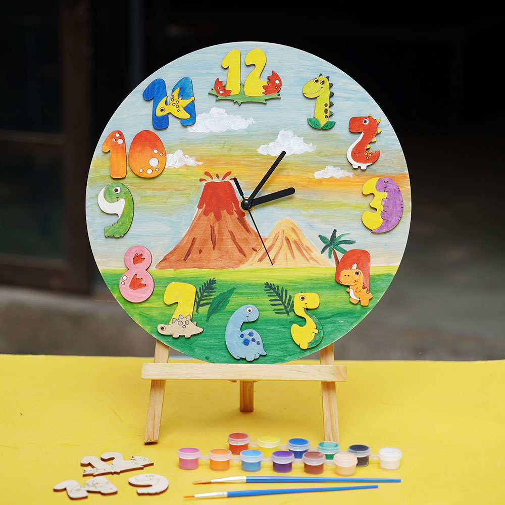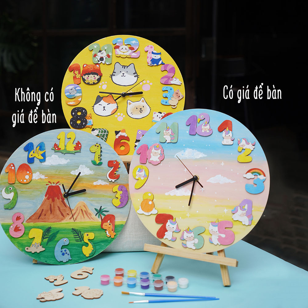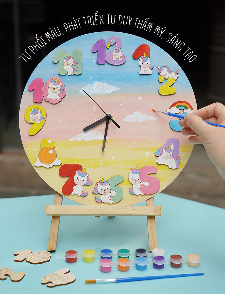 Với bộ kit tự tô màu trang trí đồng hồ gỗ, các bạn nhỏ có thể tự phối màu theo sở thích riêng của mình. Thông qua bộ đồ chơi bố mẹ cũng có thể dạy các con về cách xem giờ và nguyên lý hoạt động của các kim đồng hồ nữa. Vừa học, vừa chơi vừa tạo ra sản phẩm hữu ích trang trí trong nhà thì còn gì bằng.