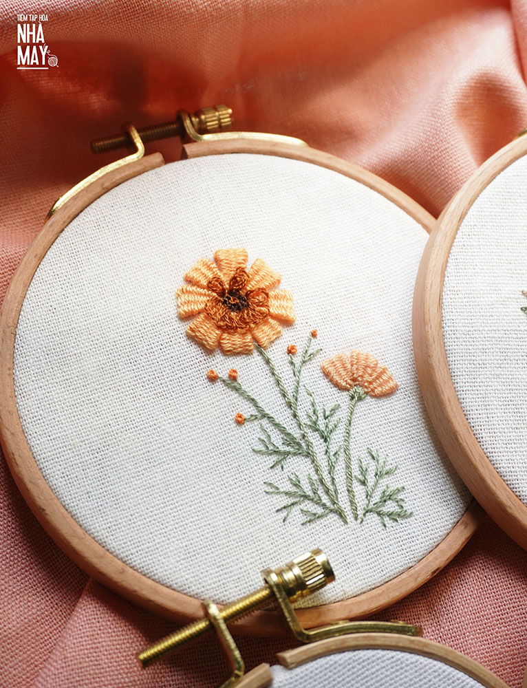 - Khung thêu: khung thêu gồm 3 loại chính: khung thêu tre, khung thêu nhựa và khung thêu gỗ. Bạn xem ở đây nhé https://tiemtaphoanhamay.vn/khung-theu