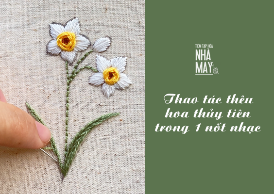 Thêu đôi bông hoa thủy tiên bằng những mũi thêu đơn giản, bạn đã thử chưa?