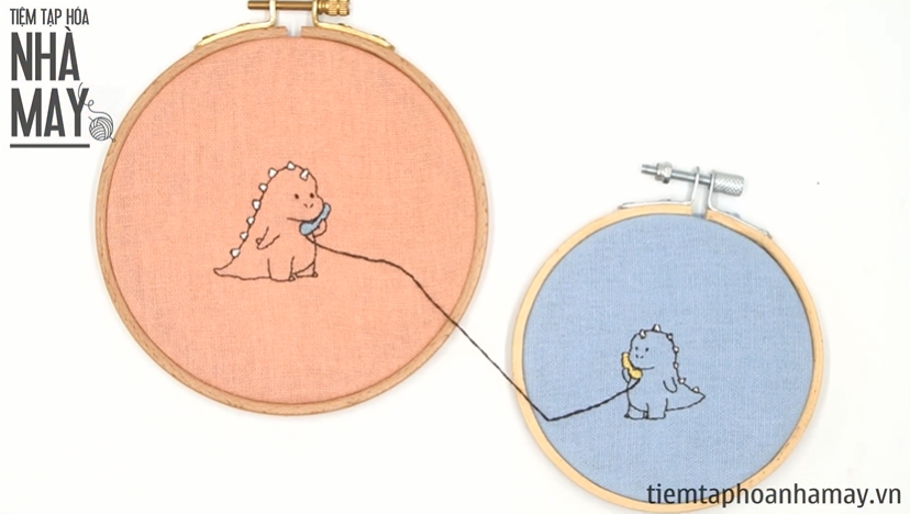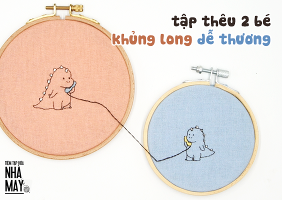 Hôm nay mình không ăn "cơm tró" mà mình ăn "cơm khủng long" nha! ^^ Một mẫu thêu siêu siêu dễ chỉ với mũi đột mau và bó bạt, và Tiệm có gợi ý cả cách để nối hai hình thêu lại với nhau để mọi người tham khảo chút xíu nữa. Nếu thích hình các con vật khác, bạn cứ thoải mái thay đổi và áp dụng cách làm tương tự nhé.