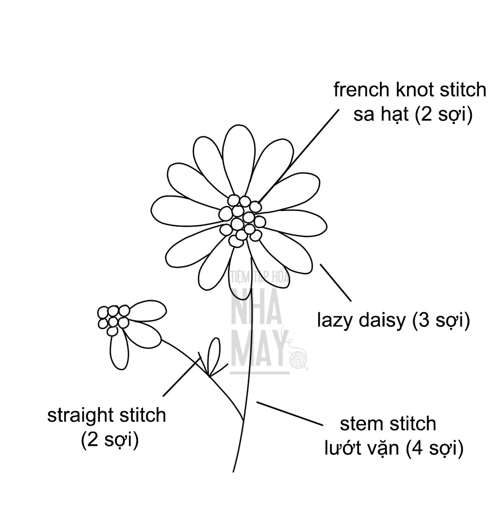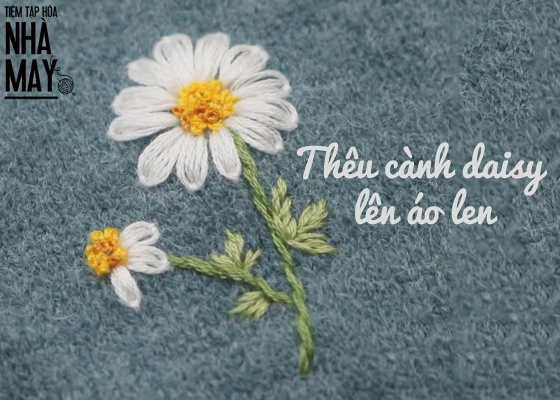Thêu cành daisy nho nhỏ lên áo len (có mẫu in)