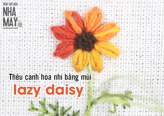 Thêu cành hoa nhí bằng mũi lazy daisy