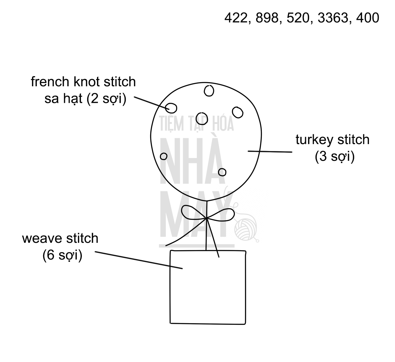 Thêu Cây Tán Tròn mượt mà bằng mũi Turkey stitch (có mẫu in)