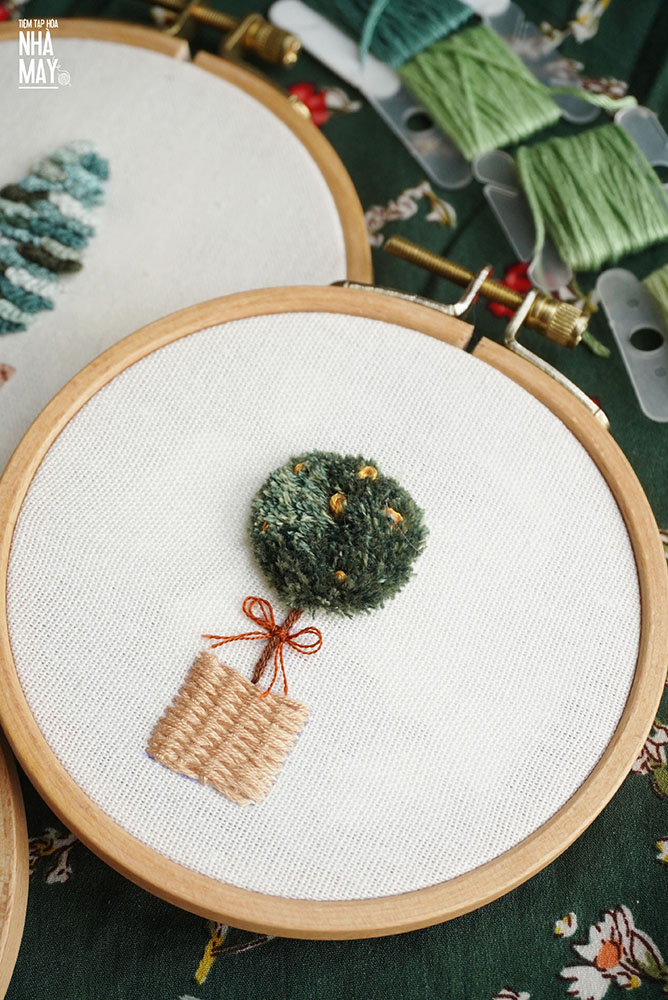 Thêu Cây Tán Tròn mượt mà bằng mũi Turkey. Mũi Turkey không chỉ dùng thêu hoa mà thêu cây cũng rất lạ nhé mọi người.