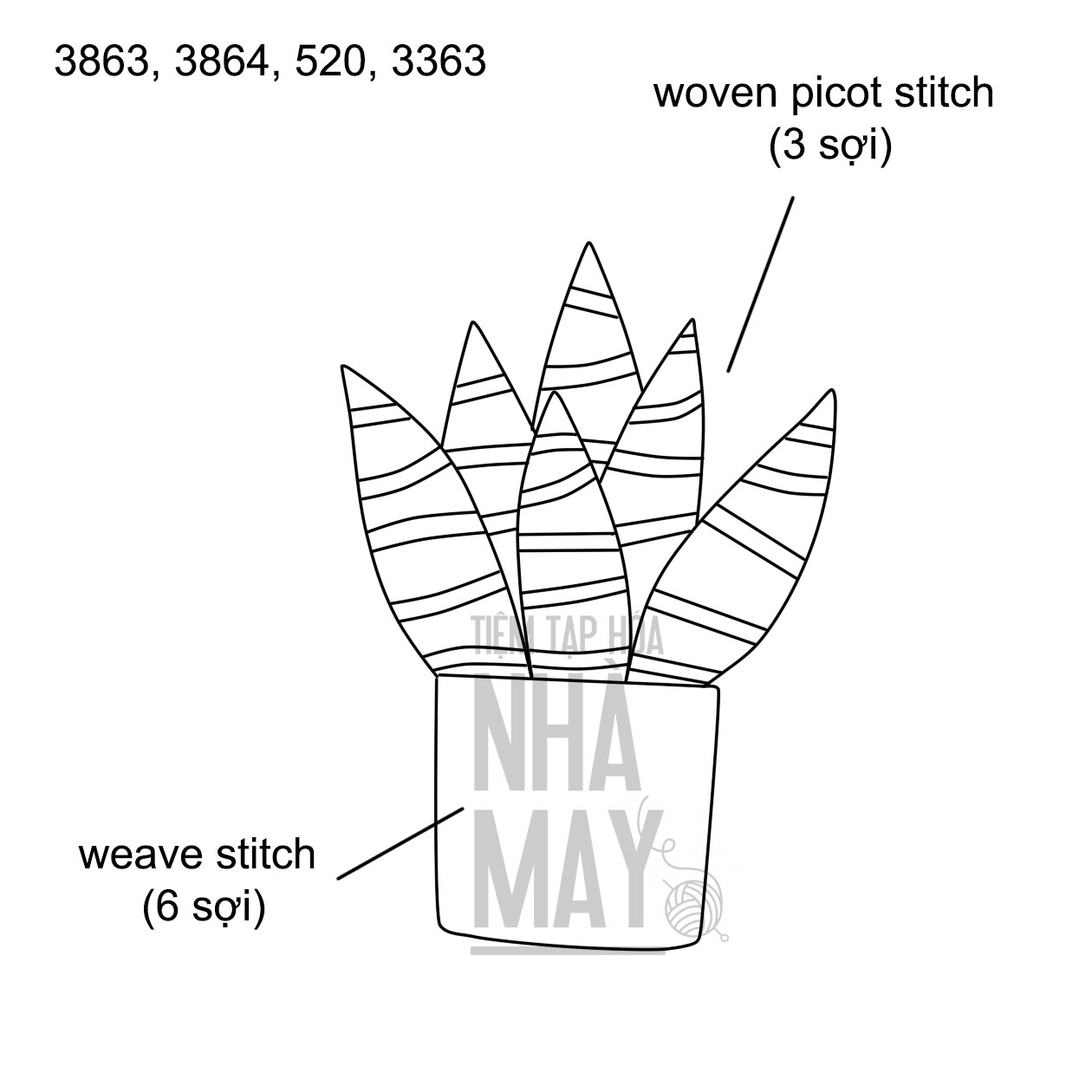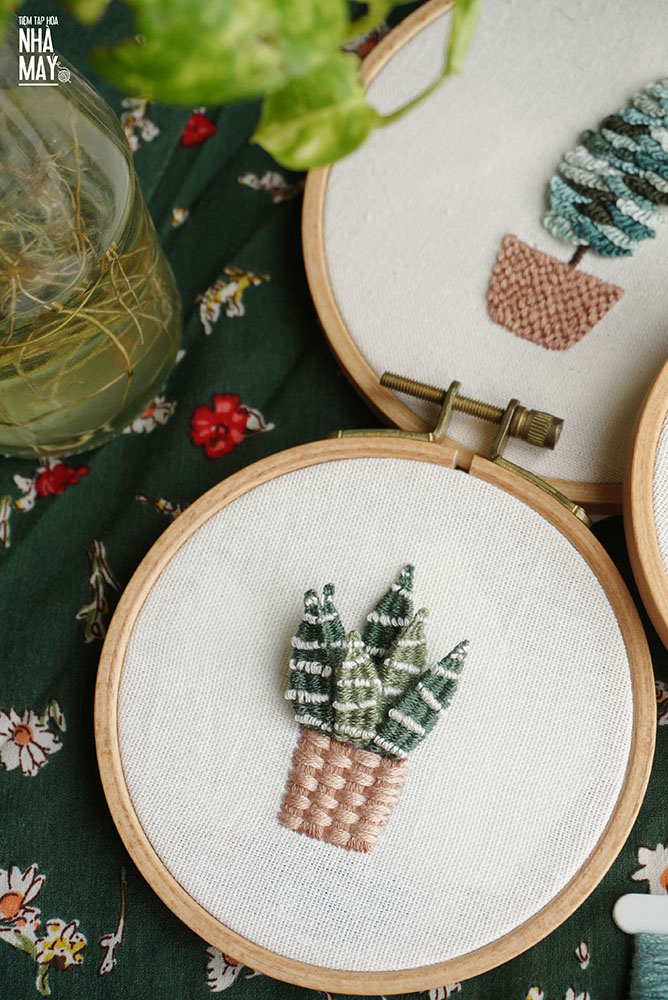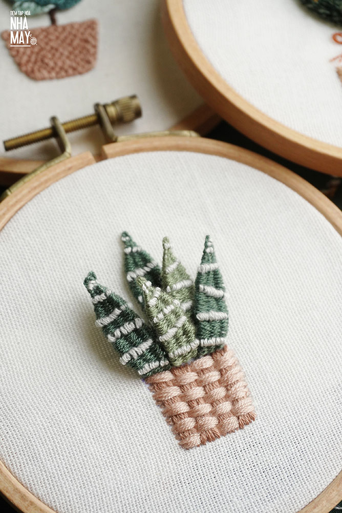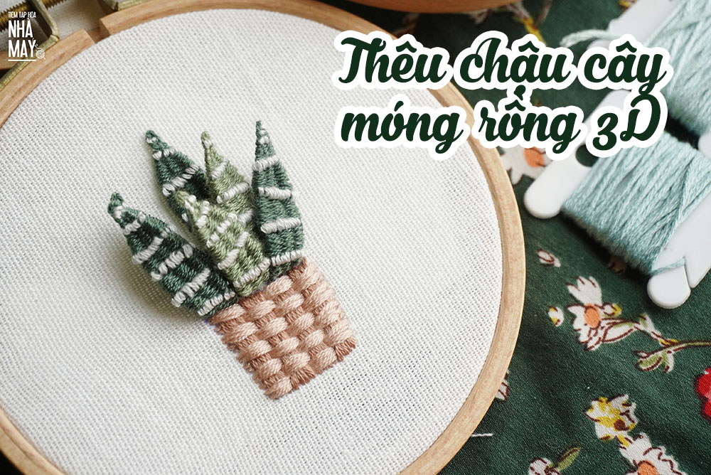 Thêu chậu cây móng rồng 3D (có mẫu in)
