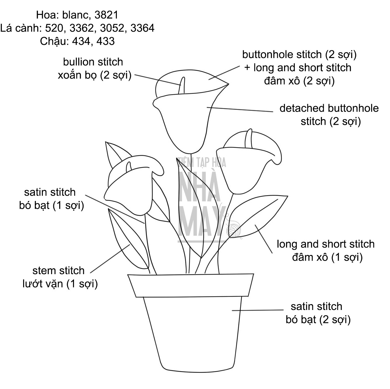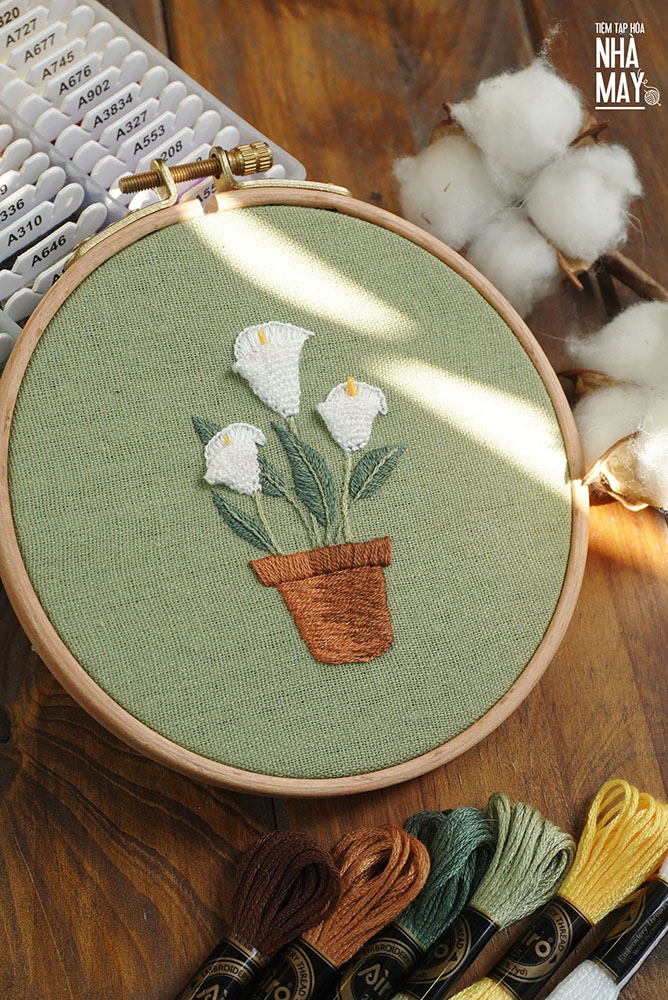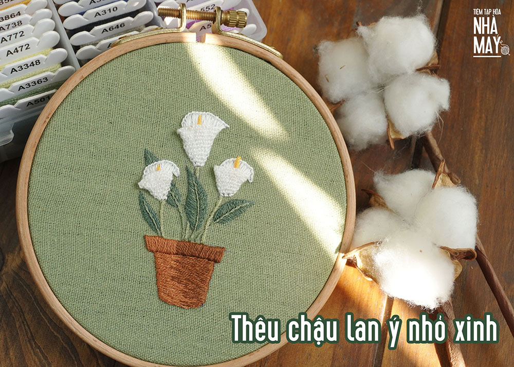 Thêu chậu lan ý nhỏ xinh (có mẫu in)
