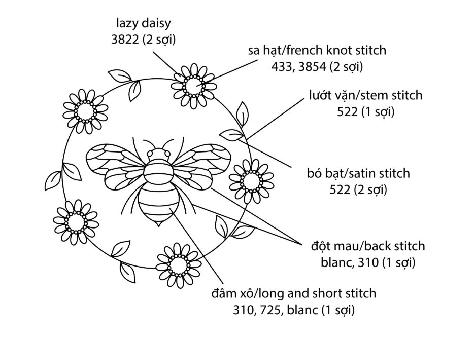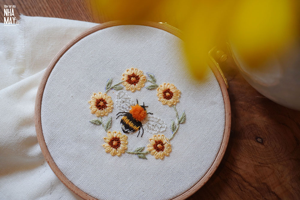 Thêu chị ong vàng cùng viền hoa hướng dương nổi bật (có mẫu in)