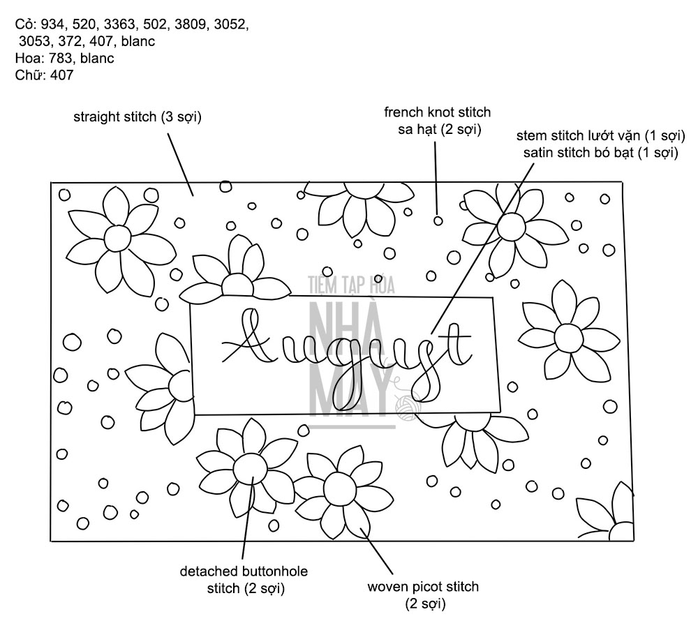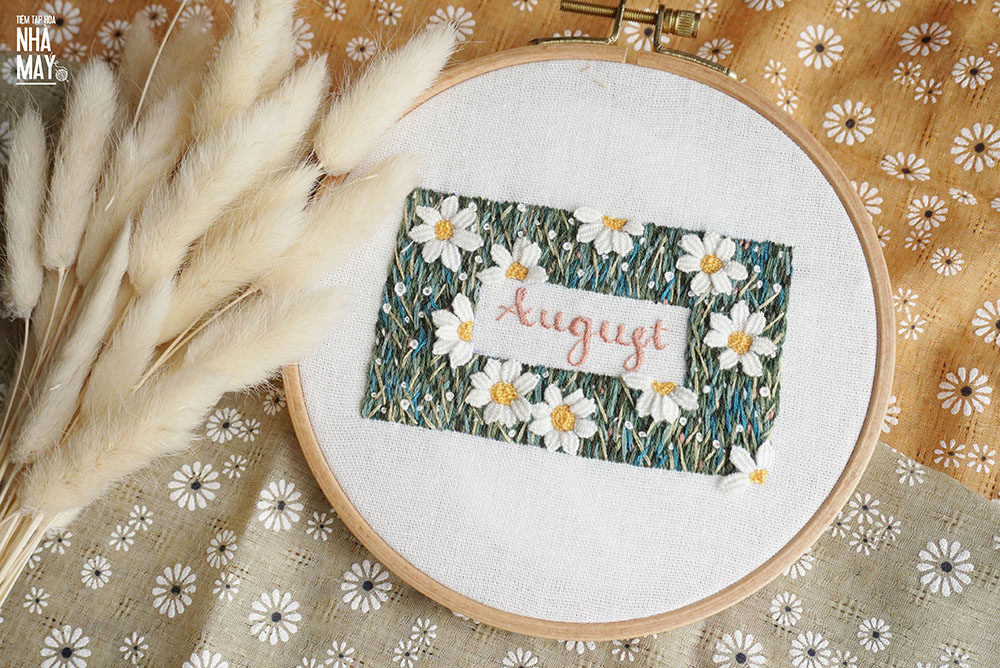 Thêu chữ August chào tháng 8 (có mẫu in)